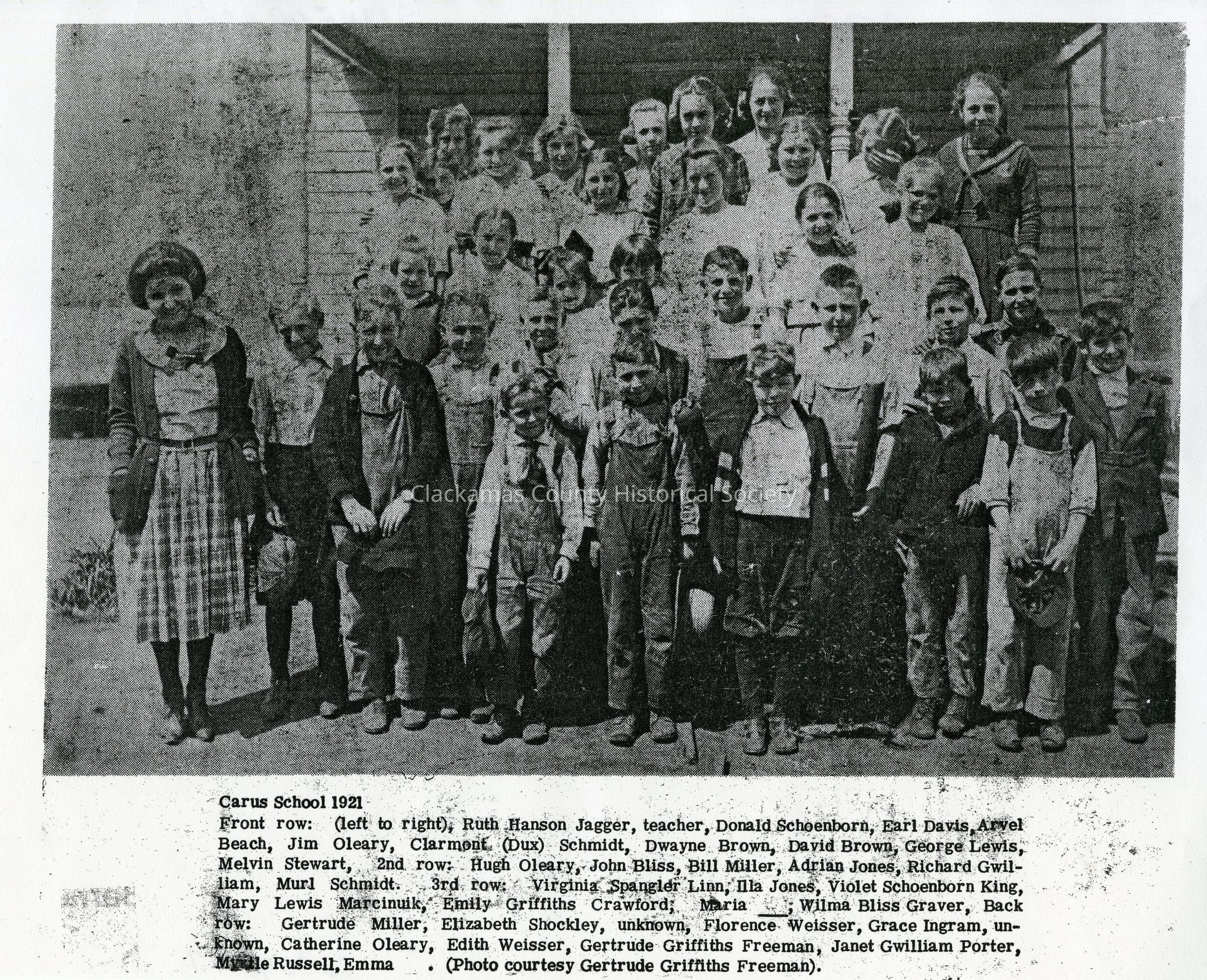 Paper copy of photograph of Carus School students class of 1921