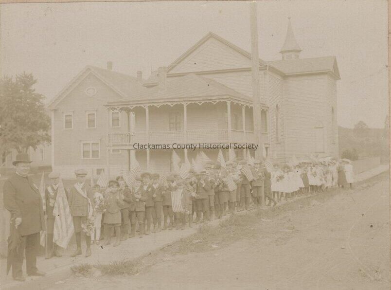 St. John's Catholic School Students along 10th behind the Roman Catholic Church - Oregon City - 1895Entry/Object ID
