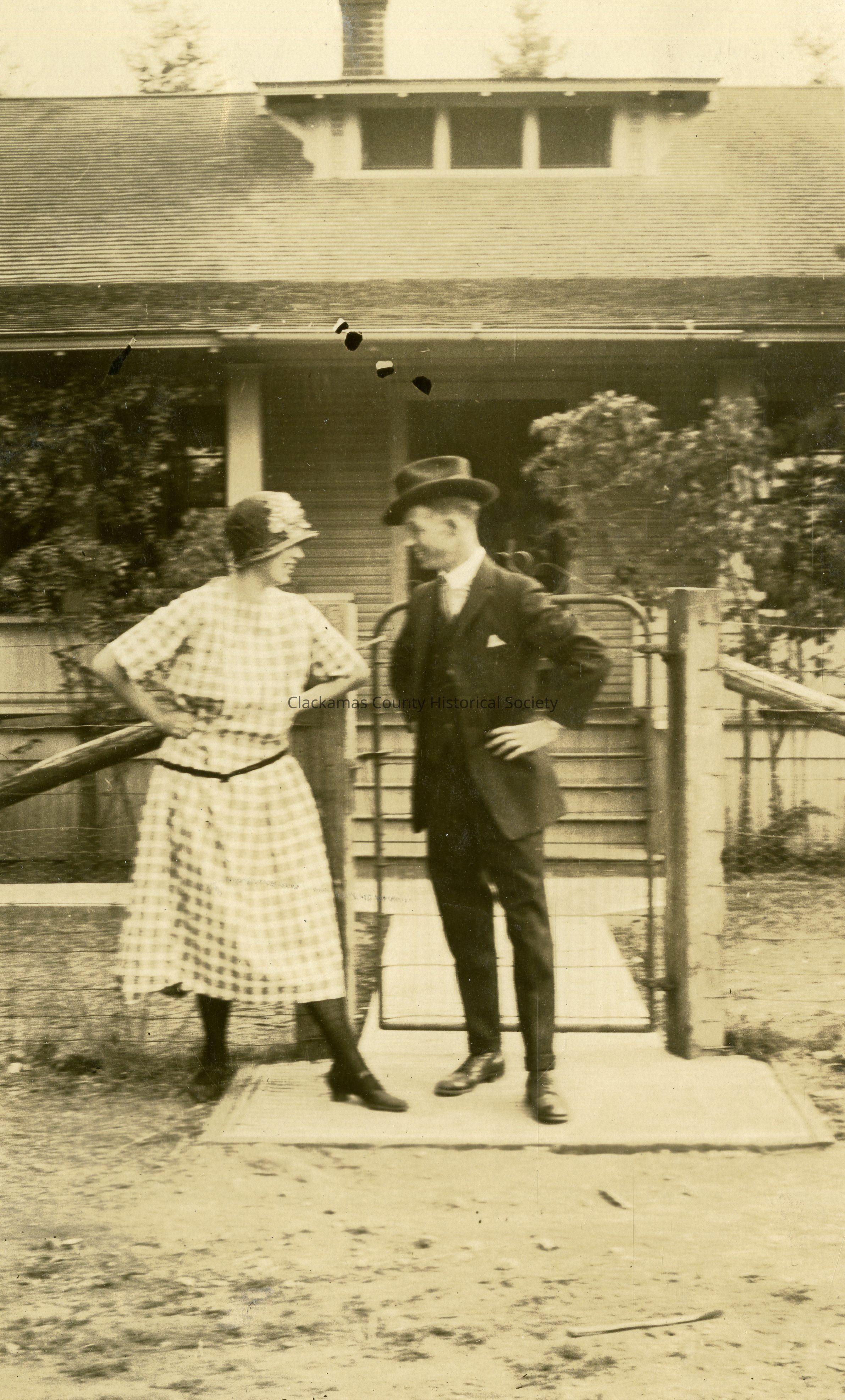 Unknown Couple in Front of what looks like the Talbert House in Clackamas