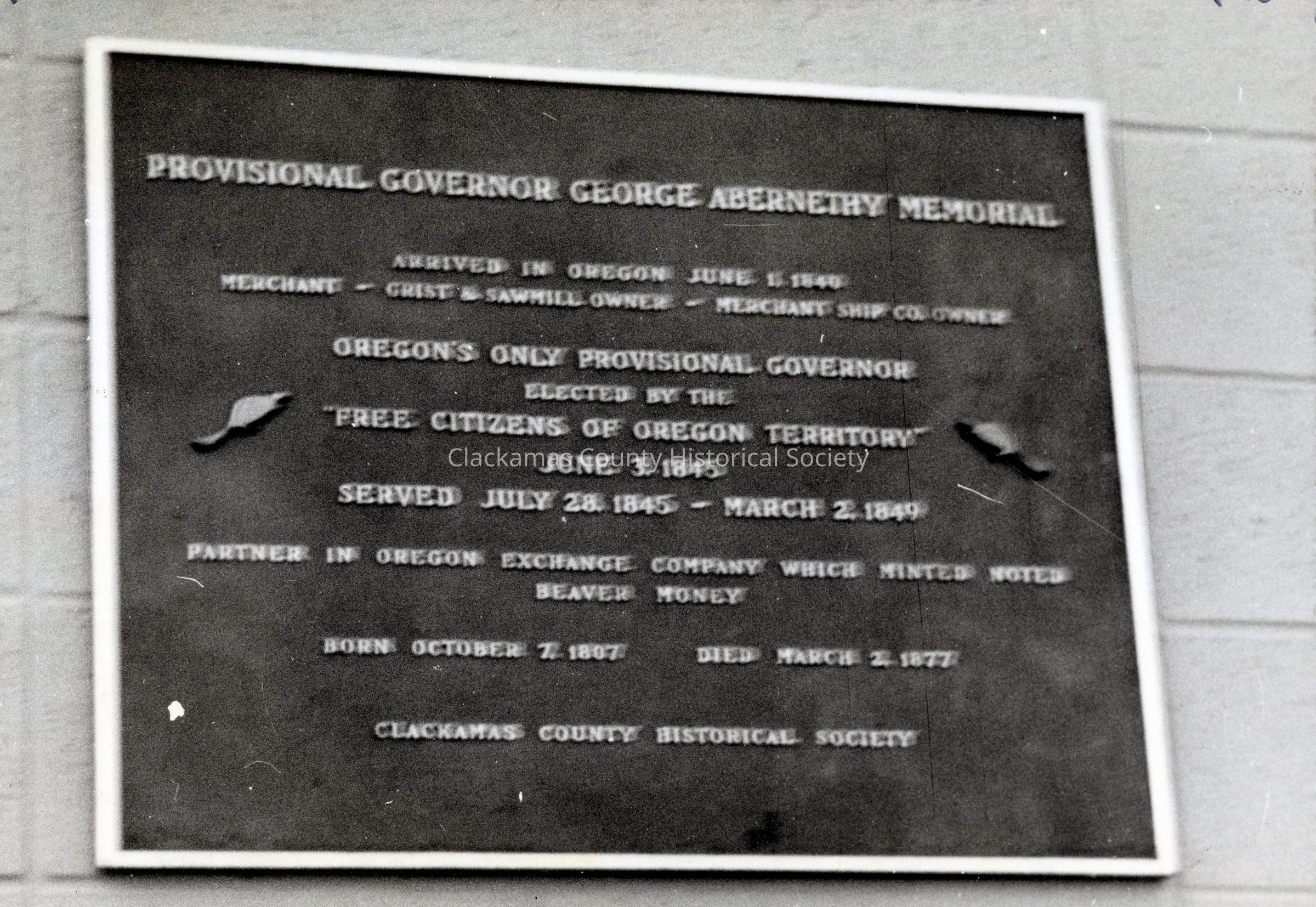 Oregon City 1964 - George Abernethy Memorial Plaque on Oregon City Post Office BuildingEntry/Object ID