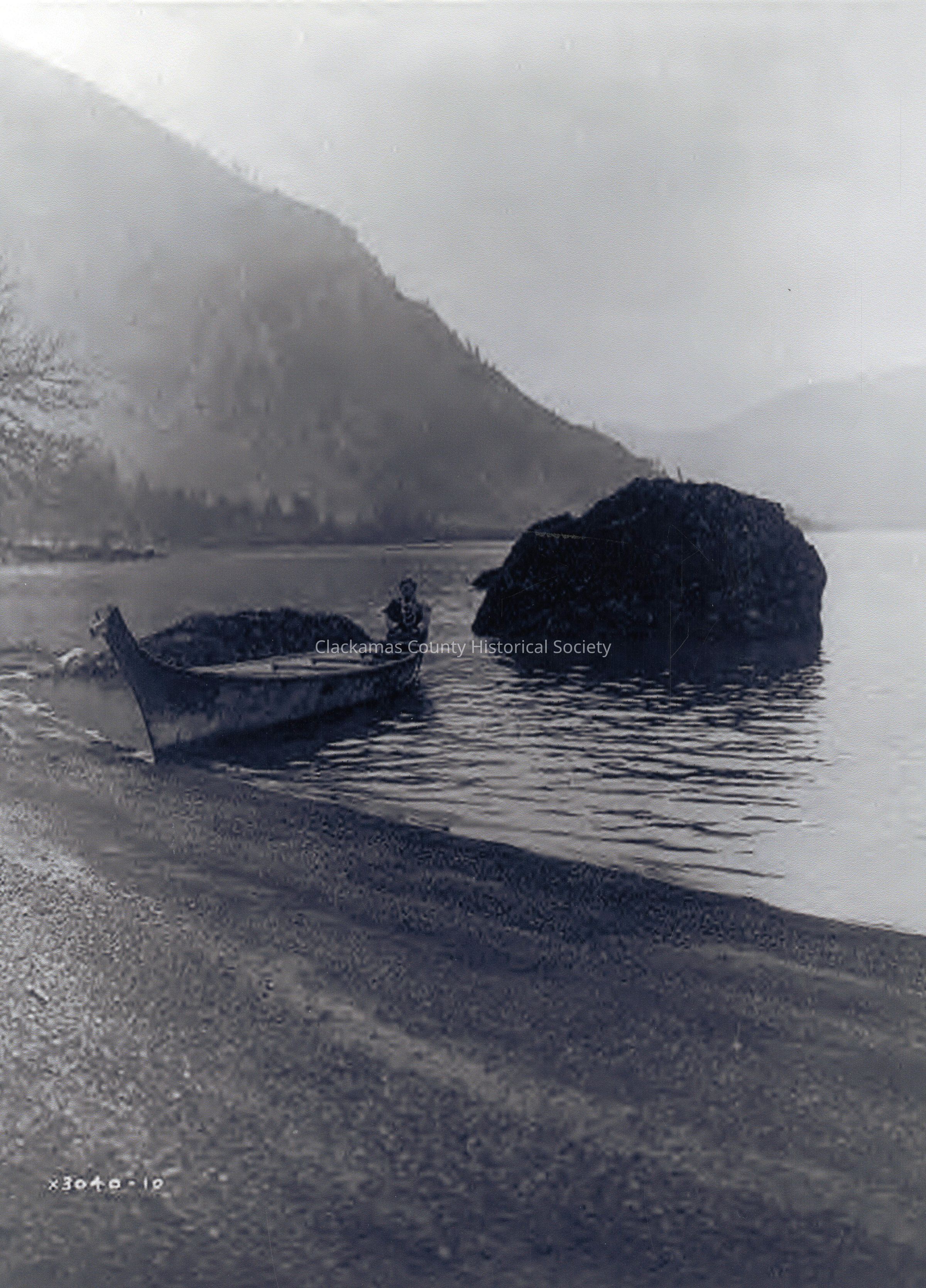 "Edward Curtis took this 1910 photograph of Cascade Chinook woman Virginia Miller (Why-lick Quiuck) near the mouth of the Wind River in the western Columbia Gorge, where she lived most of her life. She was a young girl when her father Tumulth, who signed the ratified 1855 Willamette Valley Treaty as the first chief of the people now known as Cascade Indians, was hung by the U.S. Army under the direction of then-Lt. Phil Sheridan. Curtis also interviewed her at length, and the interpreter was her nephew Capt. Michelle Martineau, who was also the “old river pilot” who guided Curtis’ party through the Gorge, including running the Cascade Rapids." dlking 6/24/2023