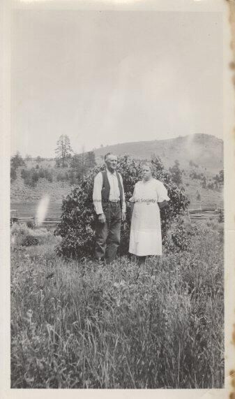 Man and woman standing in a field cross coll