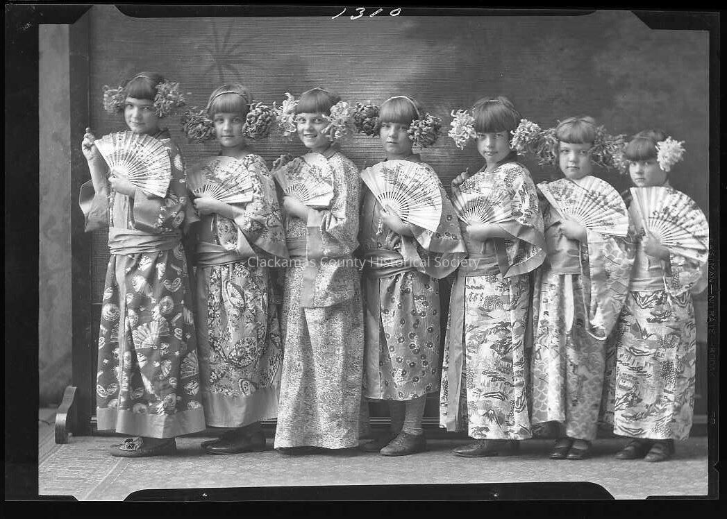 Photograph of several children in Asian Clothing for Mrs. Krassing - December 1929 - NegativeEntry/Object ID