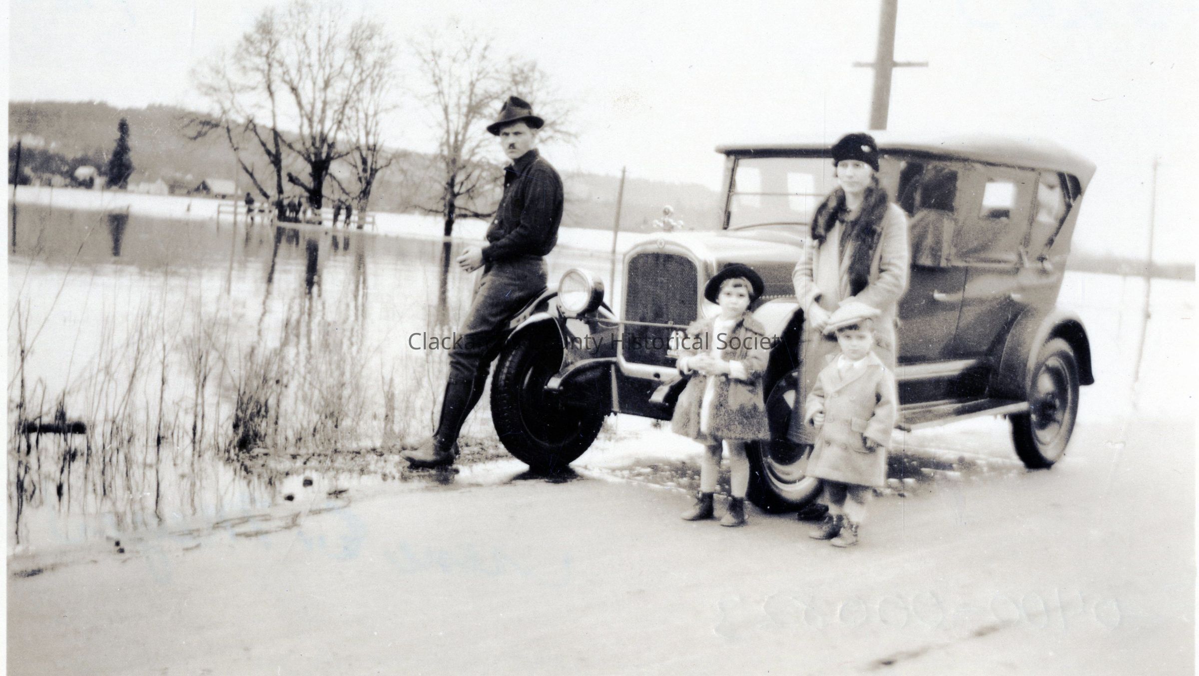 1922 Flood - Flooded roads, automobile and motorcycle travel, and travelers.
