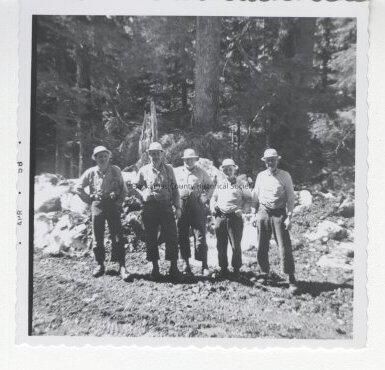 5 men standing in the woods (logging crew)