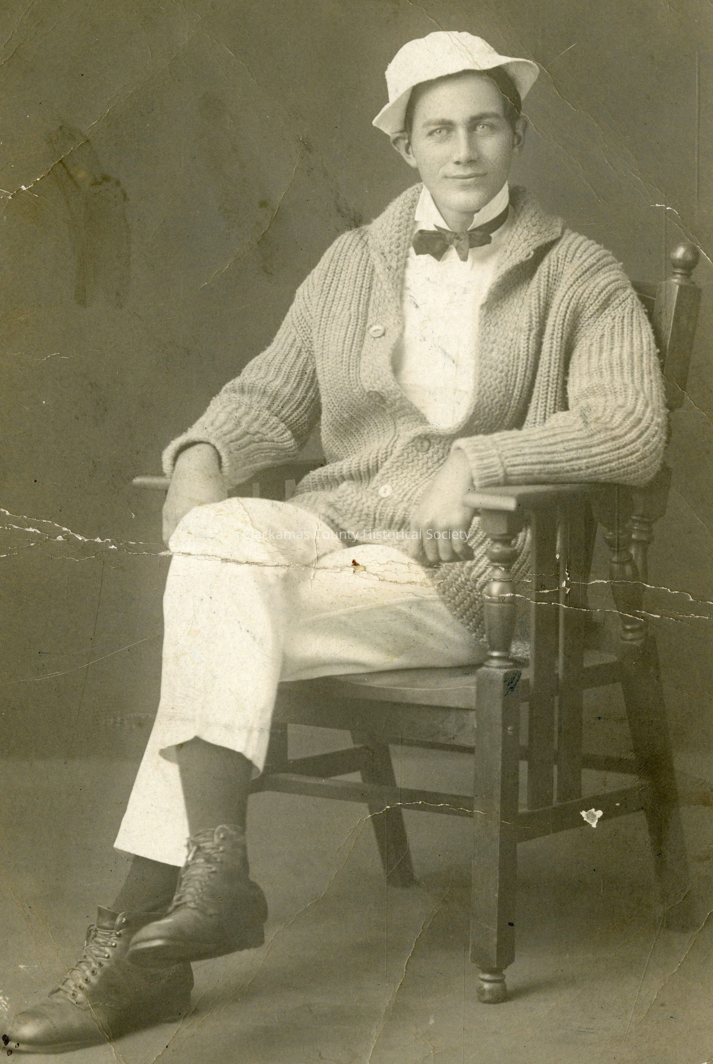 Photograph Post Card wiith a studio photograph of Hal Hoss in Taffy making outfitMade/Created