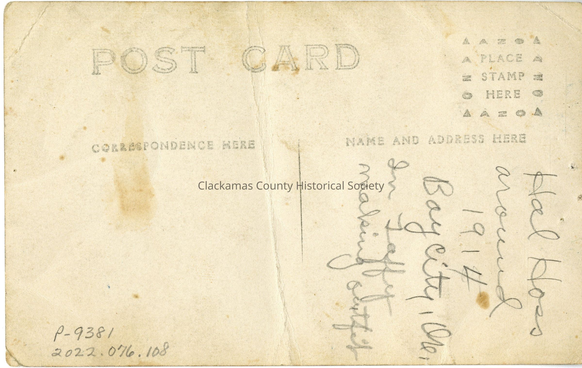 Back of post cardOther Names and Numbers