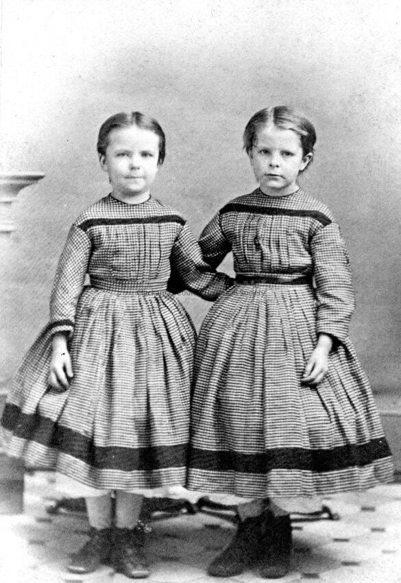 Ada E. Coburn and Agnes E. Coburn. Daughters of Catherine Amanda (Scott). Note on back reads: " Mrs. Coburn went to school until 12 yrs old. She was widowed when her oldest daughter was 8 yrs and youngest 2 yrs old. Received her teaching certificate, applied to the Canemah school board to teach. She received $40/month. She was an active woman suffragest but not as prominent as Mrs. Duniway. After teaching several years she went into newspaper work working for the "New Northwest" and the "Portland Telegram."Made/Created