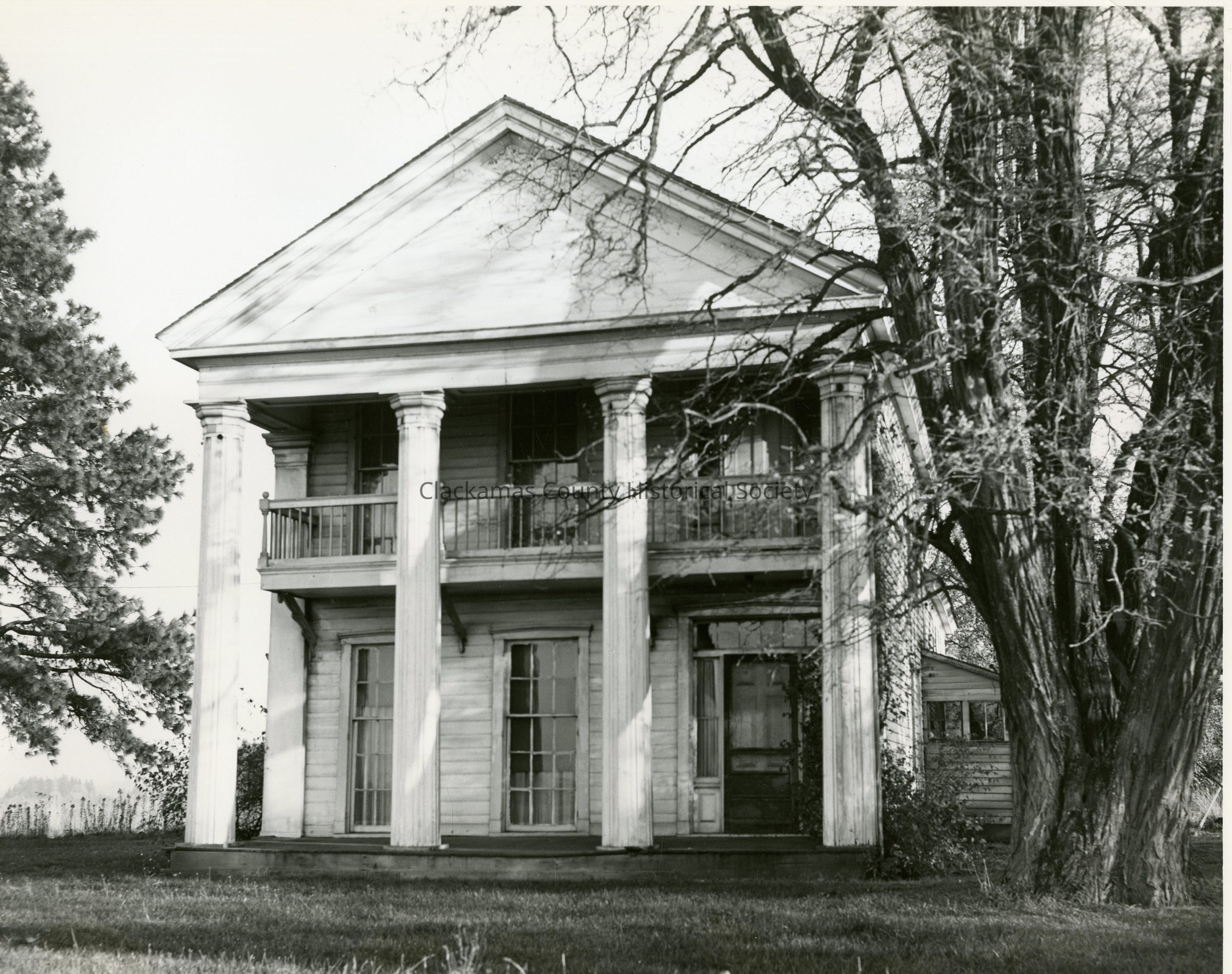 Built by Captain John C. Ainsworth. It was located in the Mt. Pleasant area of Oregon City. Its French windows, four stately columns and the second story balcony give it the appearance of houses of the old South. This is one of the pioneer houses which had a ballroom with a raised platform for the orchestra.