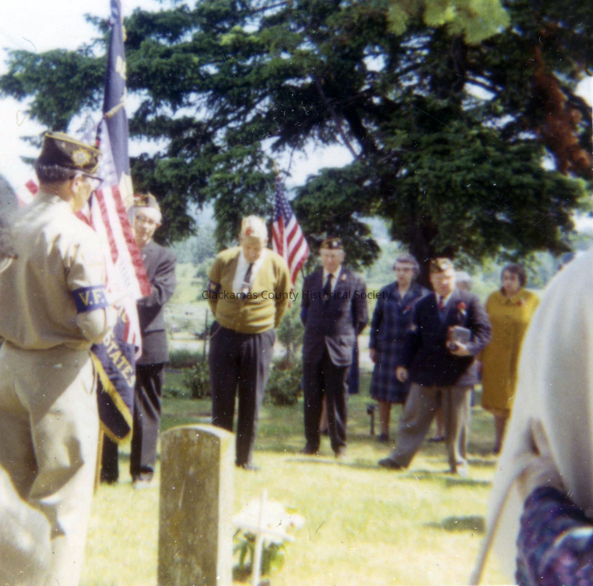 Ainsworth House, Oregon City. Photo showing what appears to be a military memorial ceremony at the Ainsworth House. 19130 Lot Whitcomb Drive, Oregon City, OR