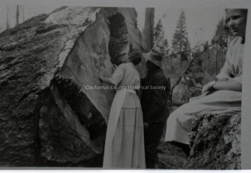 Alfred Barnabas Mulloy and his wife with a huge, large-cut cedar tree.Made/Created