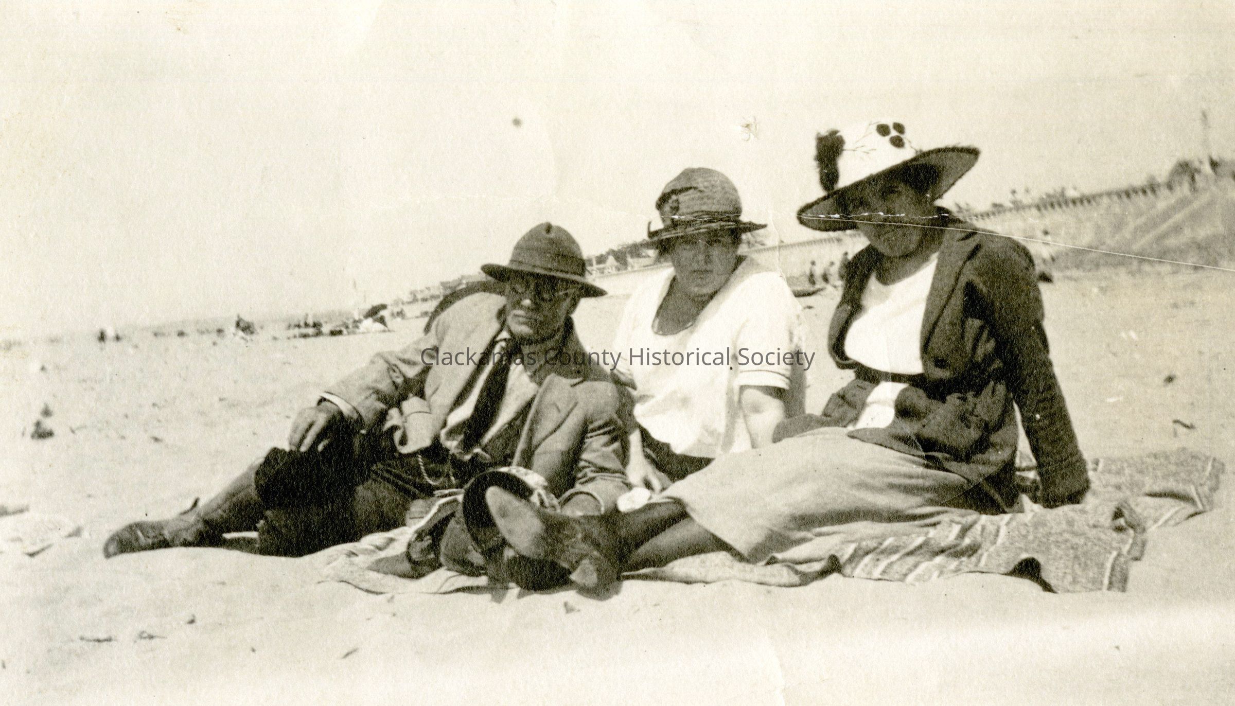 Man and two women sitting on the beach