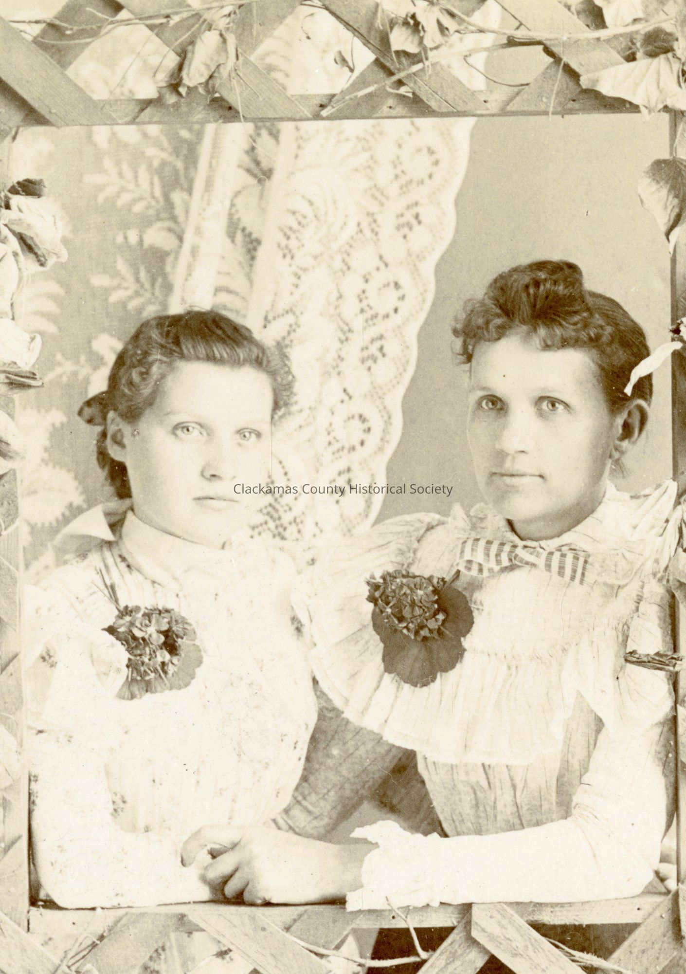 Two Women in flowered frame Photo taken at Clavering N. Y. Gallery Oregon City