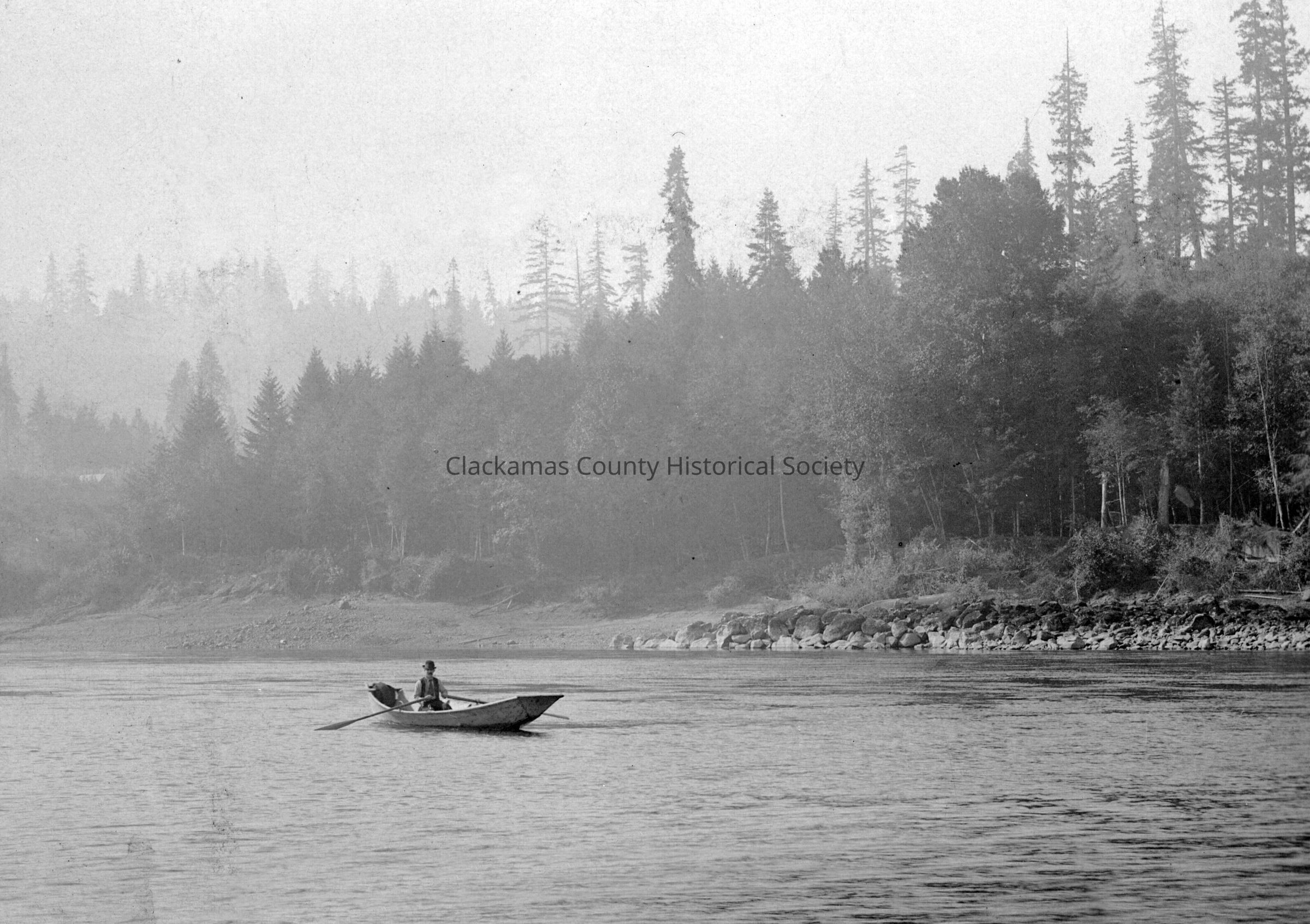 Amasa (Amassa) Marion Magone or Marion Amassa Magone (1858-1931), owner of Magone Park (in background) today it is the northern area of Burnside Park on the Tompkins DLC. Boat on Willamette River. Father was Joseph Magone, 1847 pioneer. Mother was Mary Ann Tompkins. Also known as Amy on Ammie. Buried in Mountain View (JAH 5/2024)Made/Created