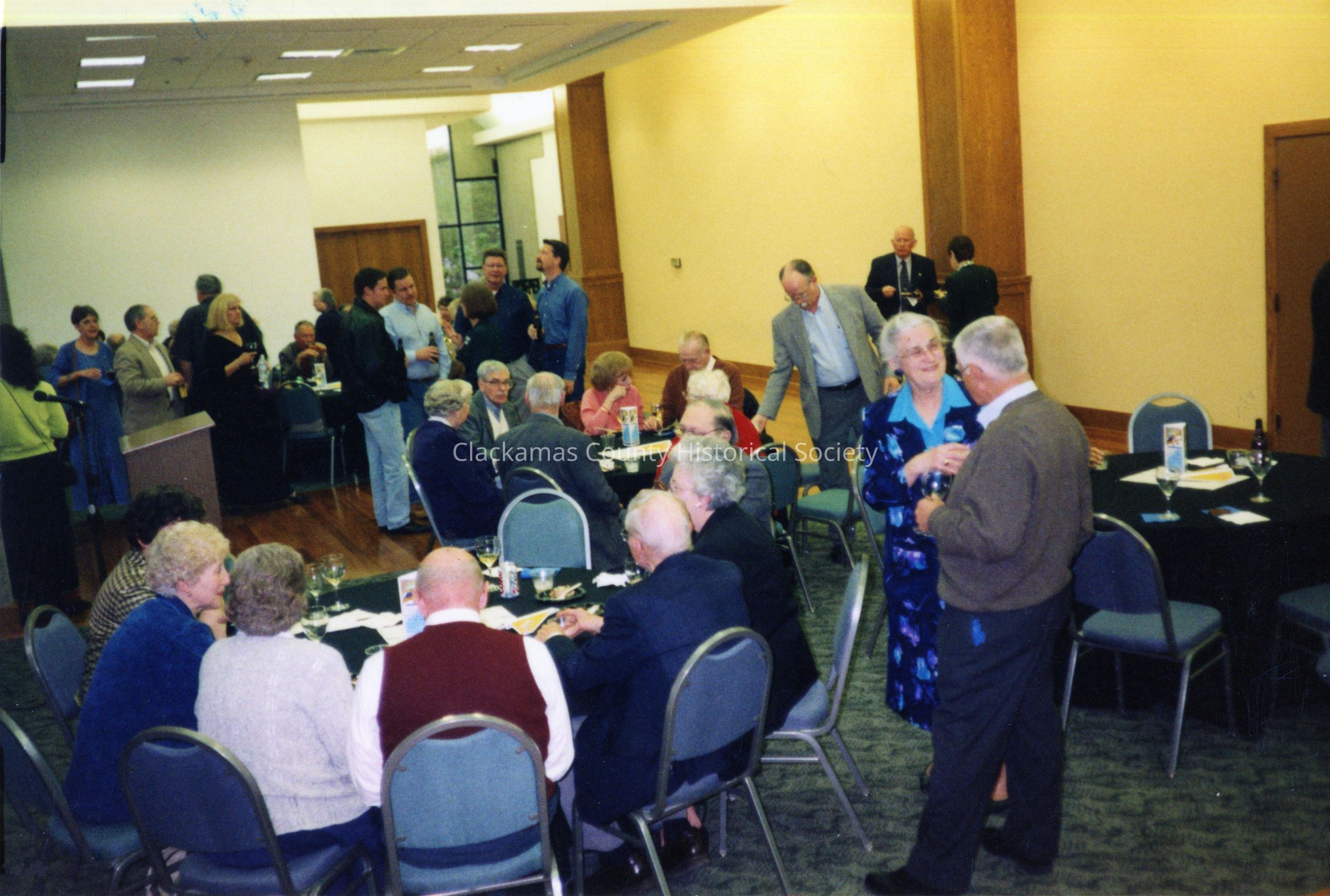 Aviation Exhibit and Opening Celebration Third floor 2002 2 pictures A. General B. Stevens Crawford table Color photo Societies. Organizations