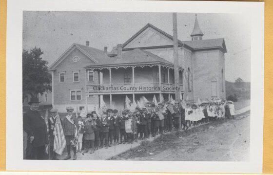 Oregon City 10th and Main, St. John 's Children with father Hilderbrand 1895