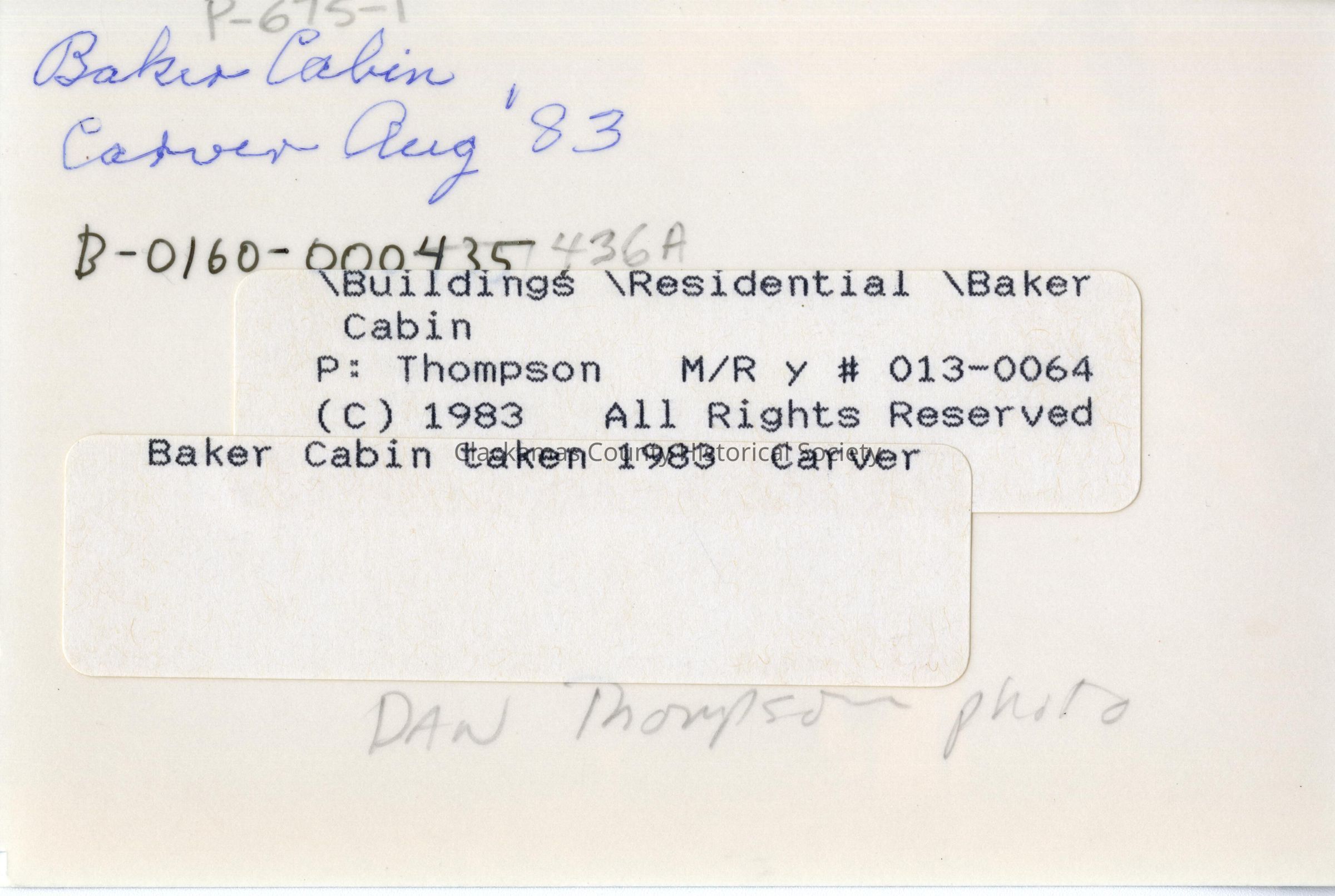 Baker Cabin 1983 - Carver, OregonEntry/Object ID