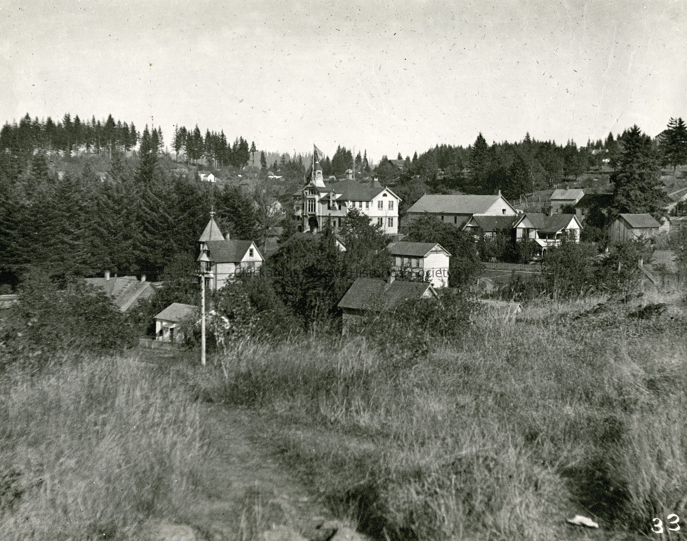 Barclay School Oregon City Viewed from hill at 11th and Washington Canby Fair Photo 1899