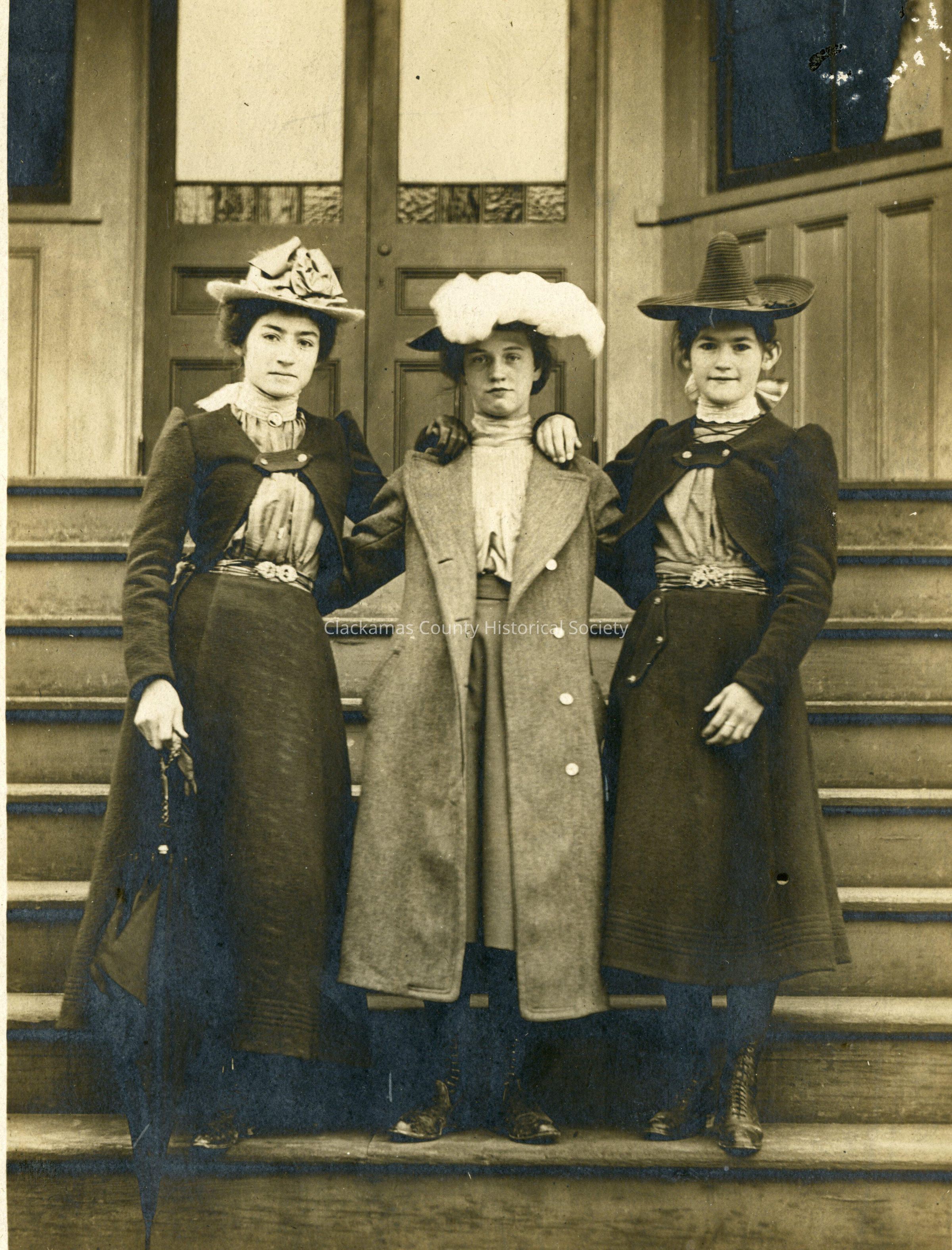 Mame Roake, Lena Gadke and Winnie Roake on Barclay School StepsMade/Created