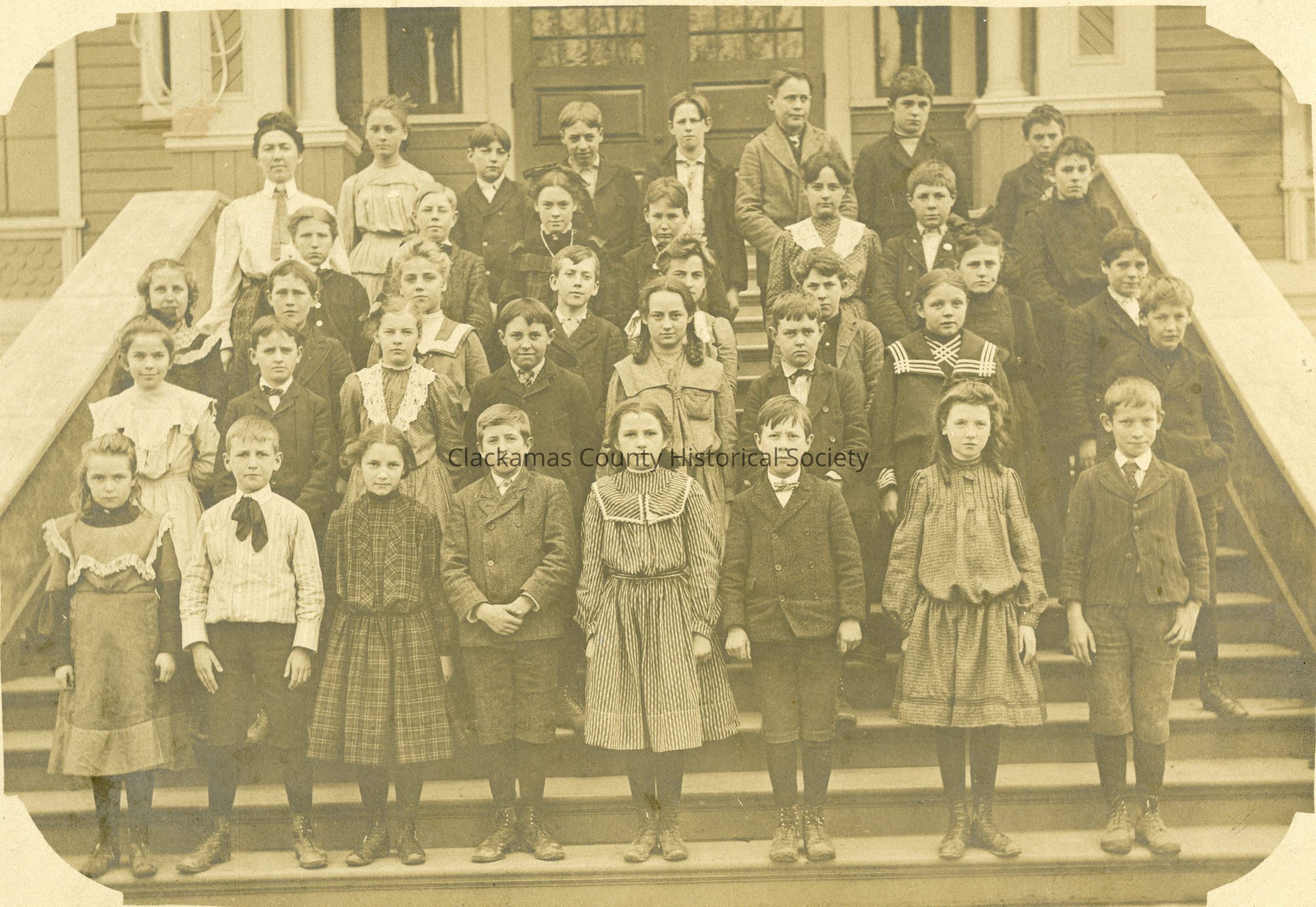 Barclay School Junia Corbet, teacher Students standing on steps to school