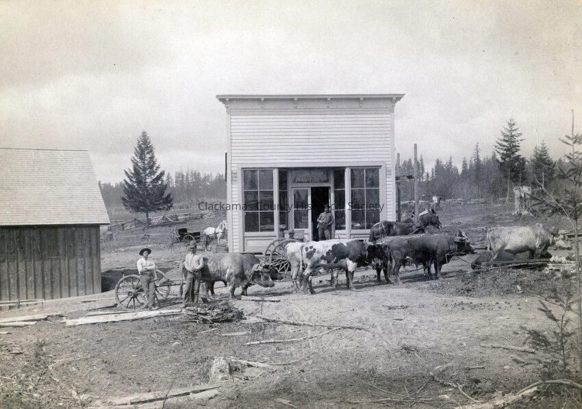 Bill Jennings Ox Team. (Barlow). Jennings logged in the Barlow area the latter part of the 1800s.Made/Created
