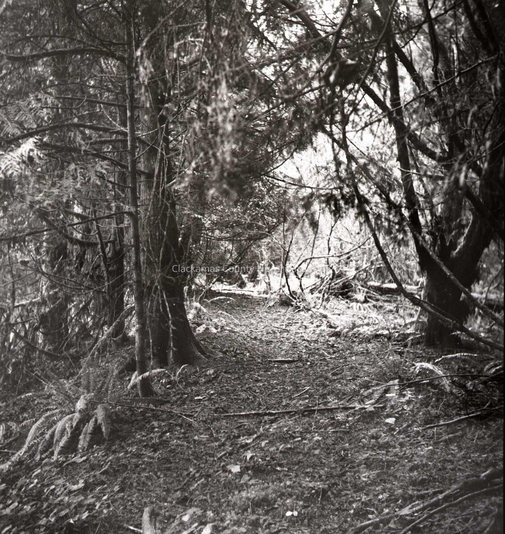Barlow Road above Feldheimer Ford. "The first and most popular route to cross the Clackamas River was called "Feldheimer Ford". This crossing was located at Clackamas River Mile (RM) 19, two miles upstream of the mouth of Eagle Creek and four miles downstream of Estacada, Oregon. - Taken from http://columbiariverimages.com/BarlowRoad/barlow_road_crossing_clackamas_river.html"Made/Created