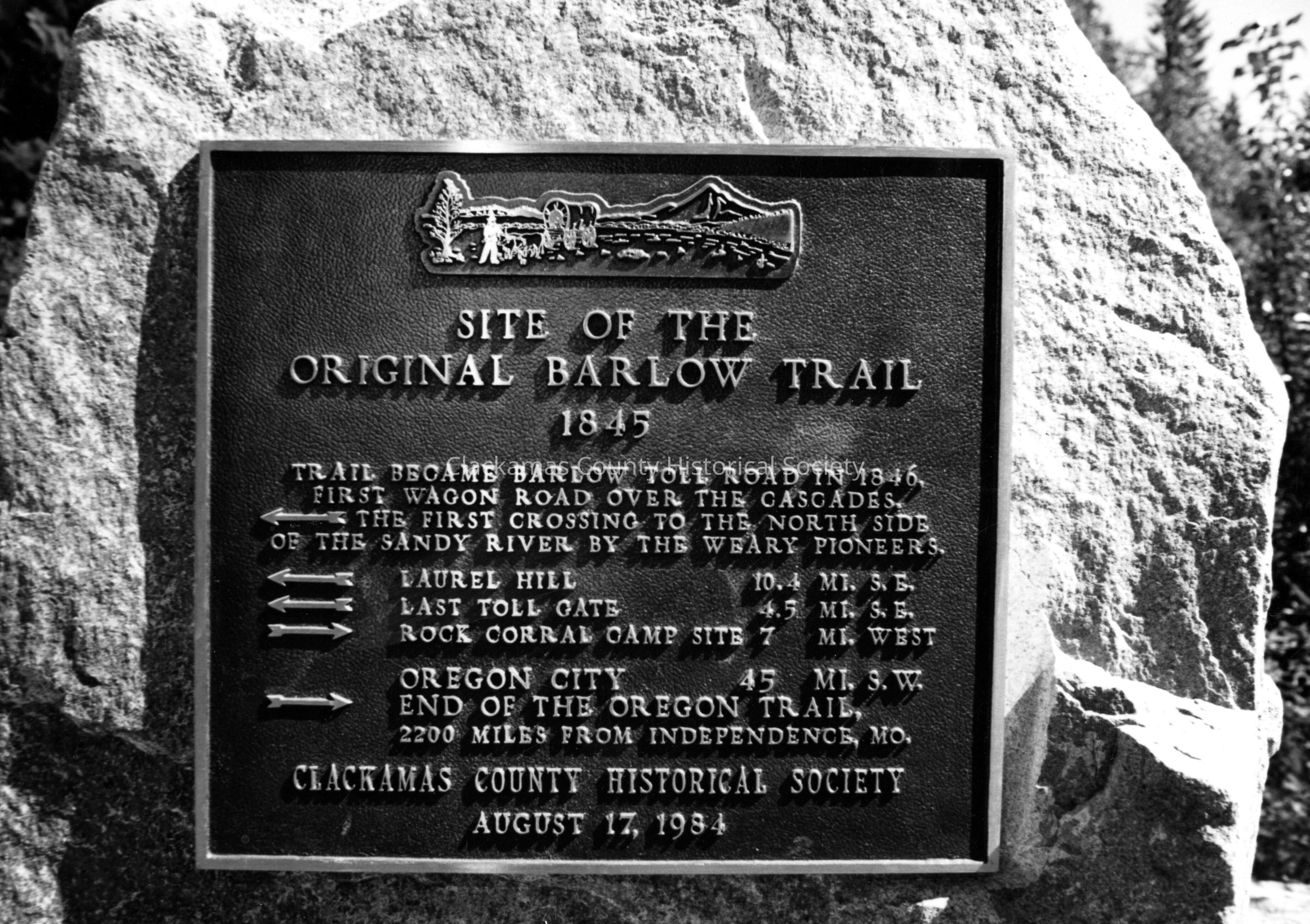 Original Barlow Trail of 1845. Plaque. Mt. Hood in background of one photo.
