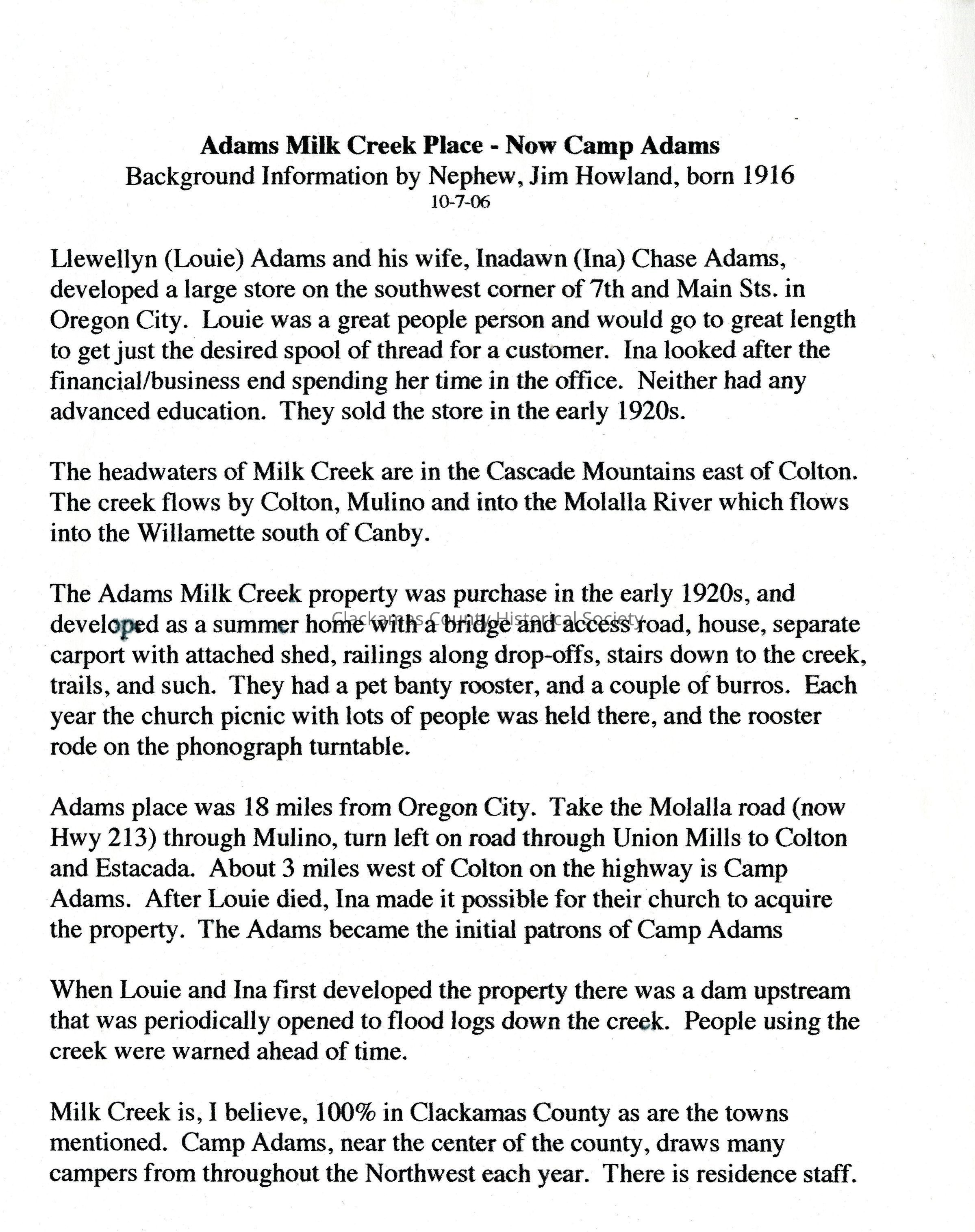 Nate Creek Falls into main Milk Creek pool at Adams summer place. Barnett Album P-502
