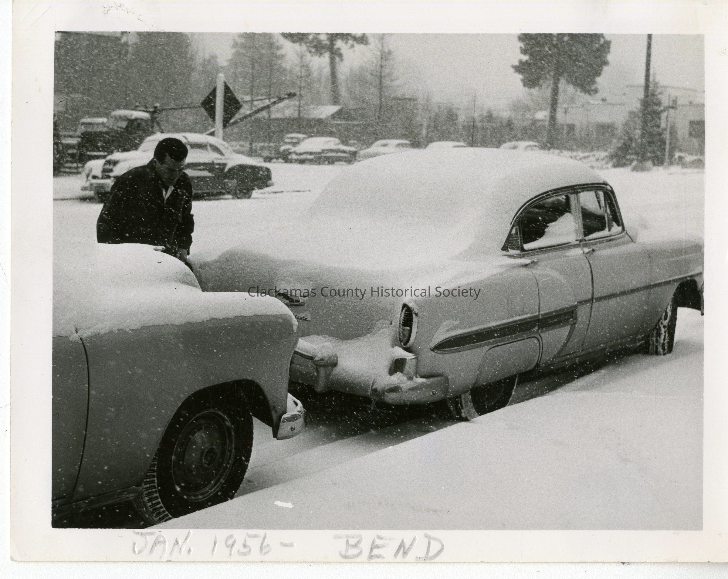 Clifford "Bud" Bassett outside in Bend with snow on the ground