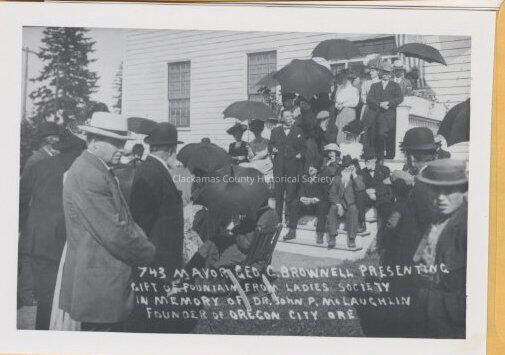 Mayor Brownell Presenting the McLoughlin House Fountain, a Gift from The Ladies Society - 1911 - Oregon City, Oregon.