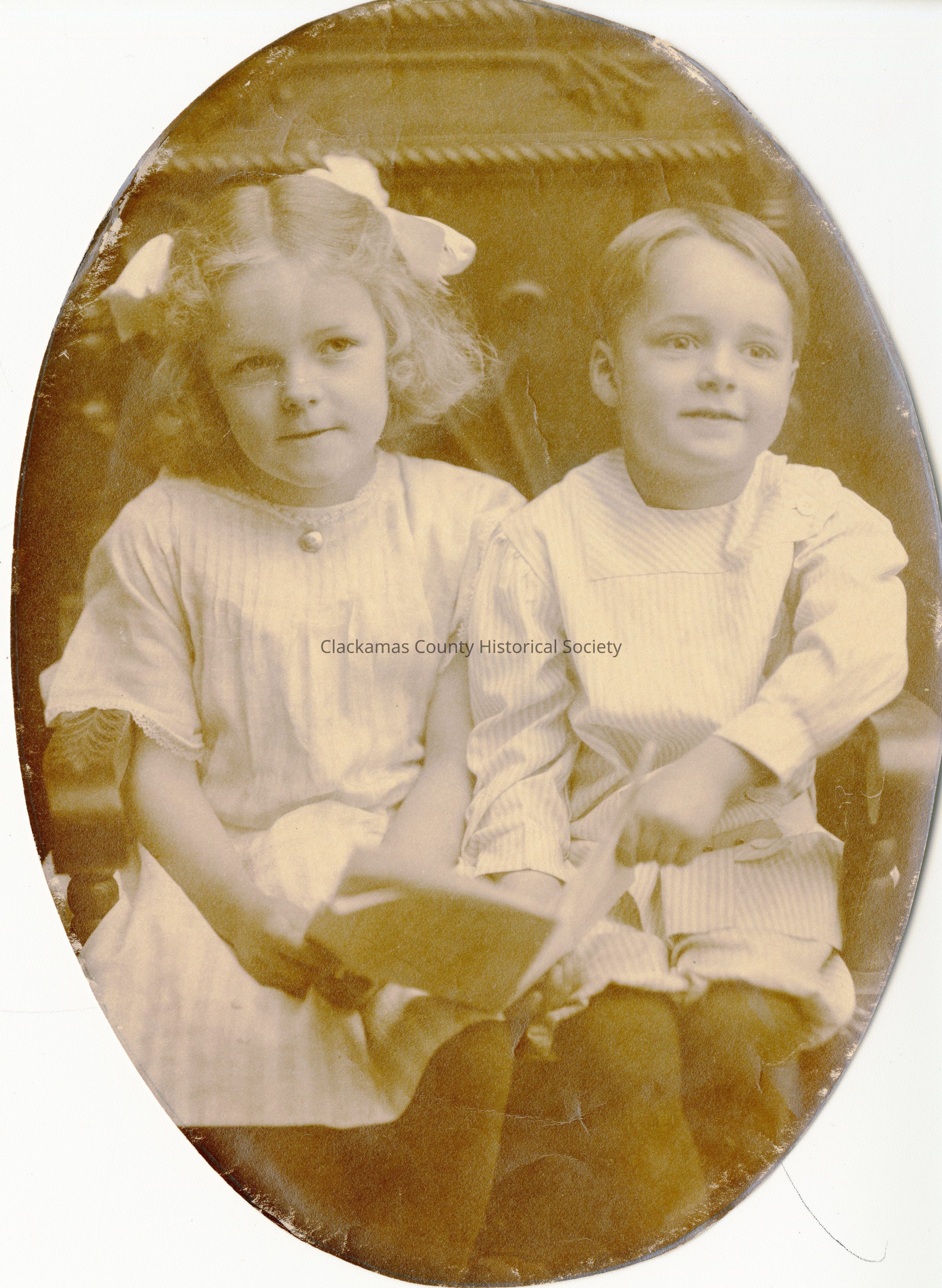 Margaret & Lot Beatie Note on back - Mother and Uncle of Jane Merrill Oval photo