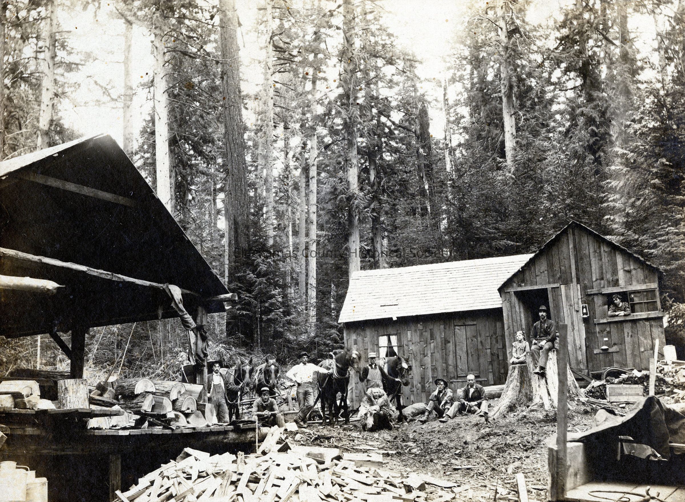 Beaver Creek- Henrici Shingle Mill Henry Henrici sitting on the stump 1905 In window Effie Henrici