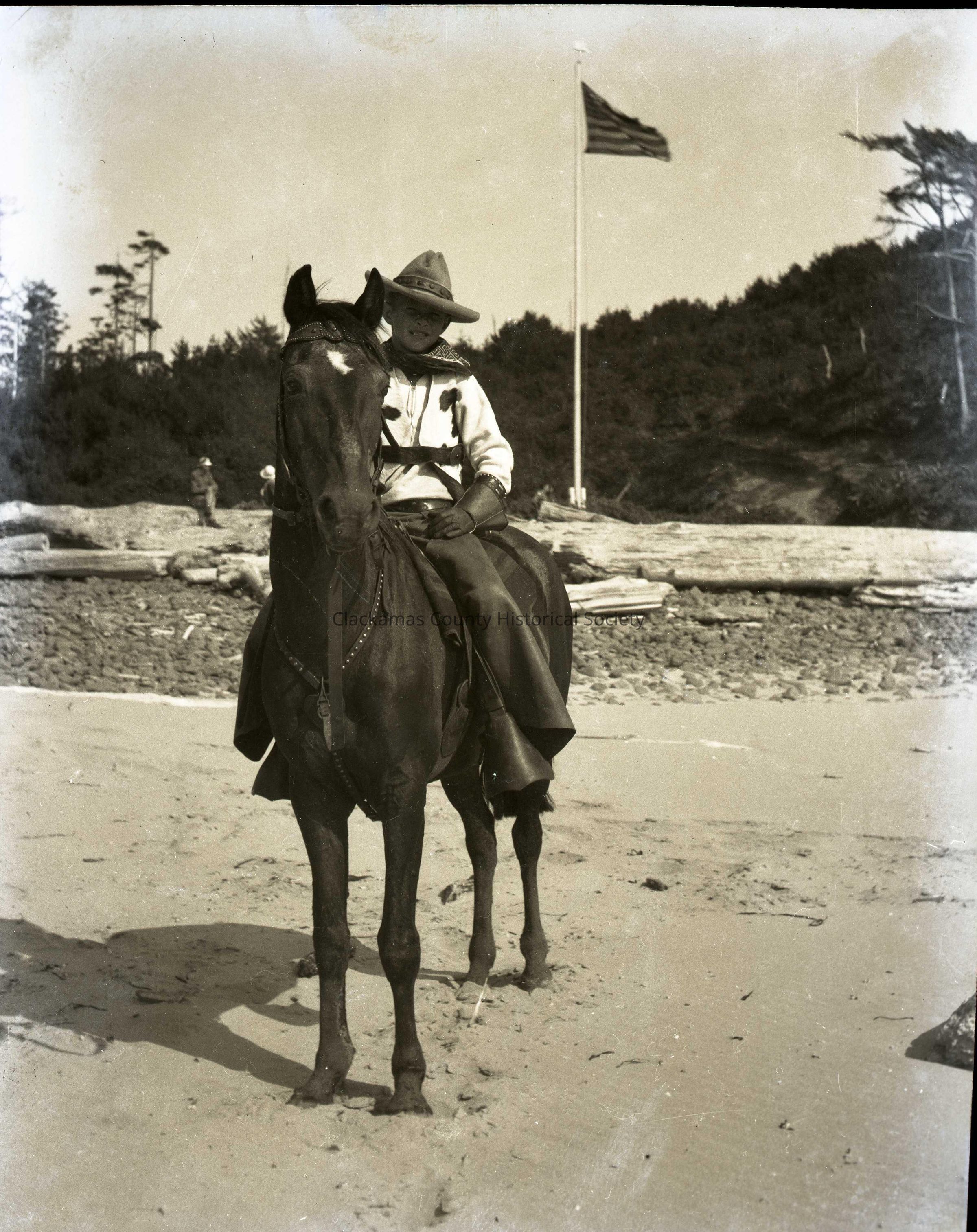 Billy Aberteufer riding horse at Boy Scouts Camp Merriwether, Oregon