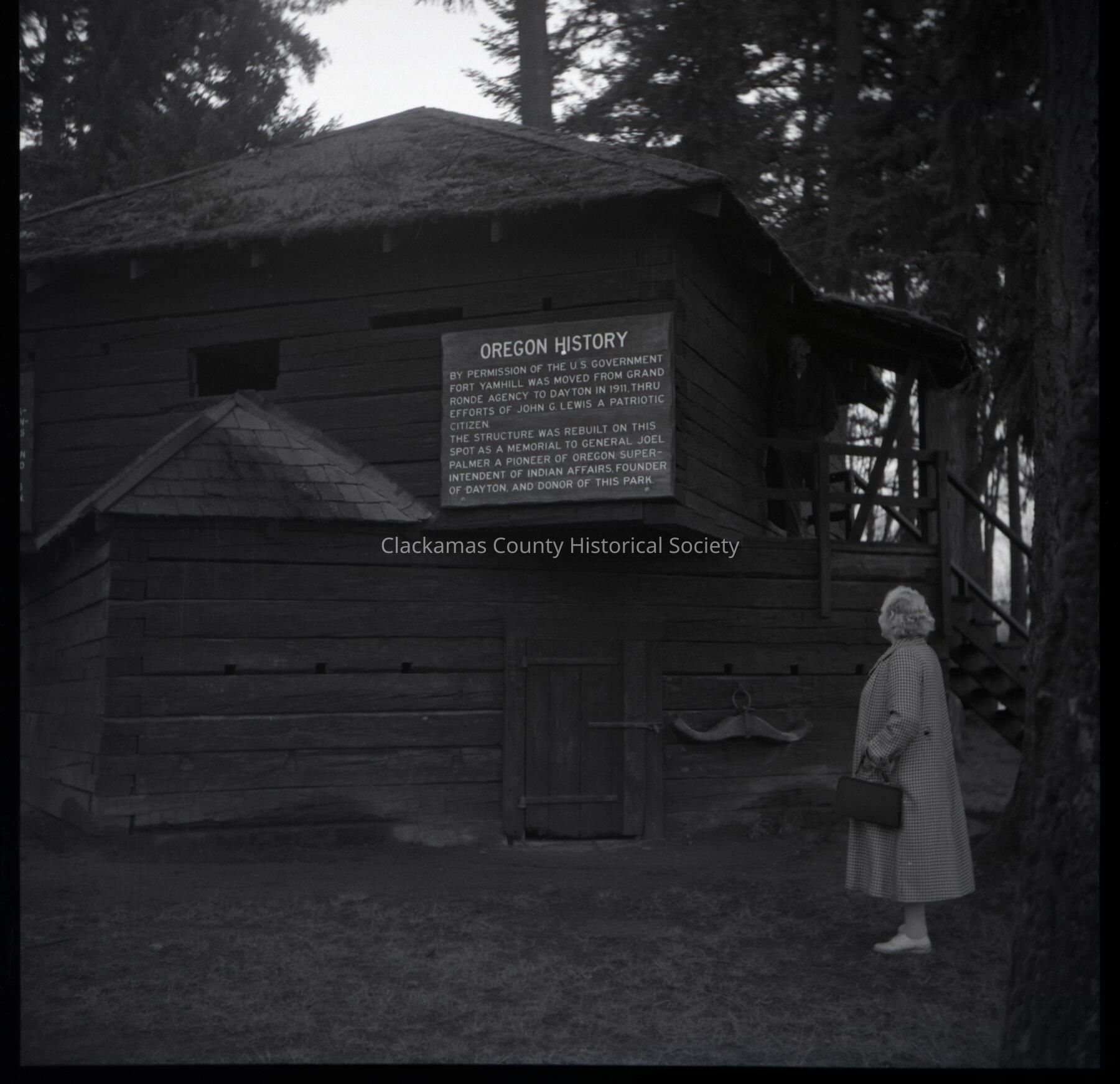 Dayton Block House (photo #1) from Grand Ronde Indian Agency. The block house was moved from the Grand Ronde Indian Agency and rebuilt in Dayton.Made/Created