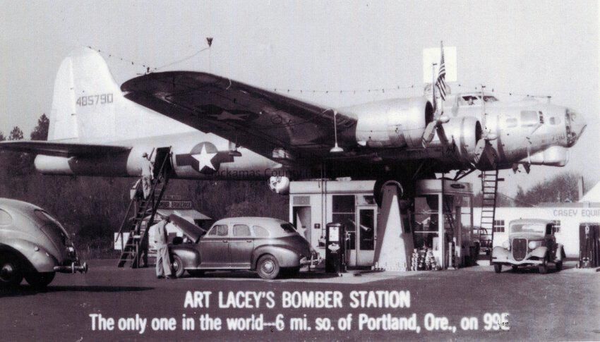 Art Lacey's Bomber Station. The only one in the world - 6 miles south of Portland, Oregon, on 99E.Made/Created