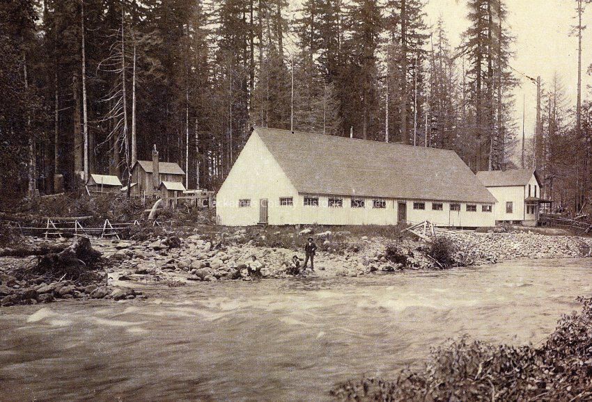 Boulder River/Salmon River fish hatchery, 1900. Superintendent Tom Brown was Bessie Carrico Mellien Klokavold's sister's father-in-law.Made/Created