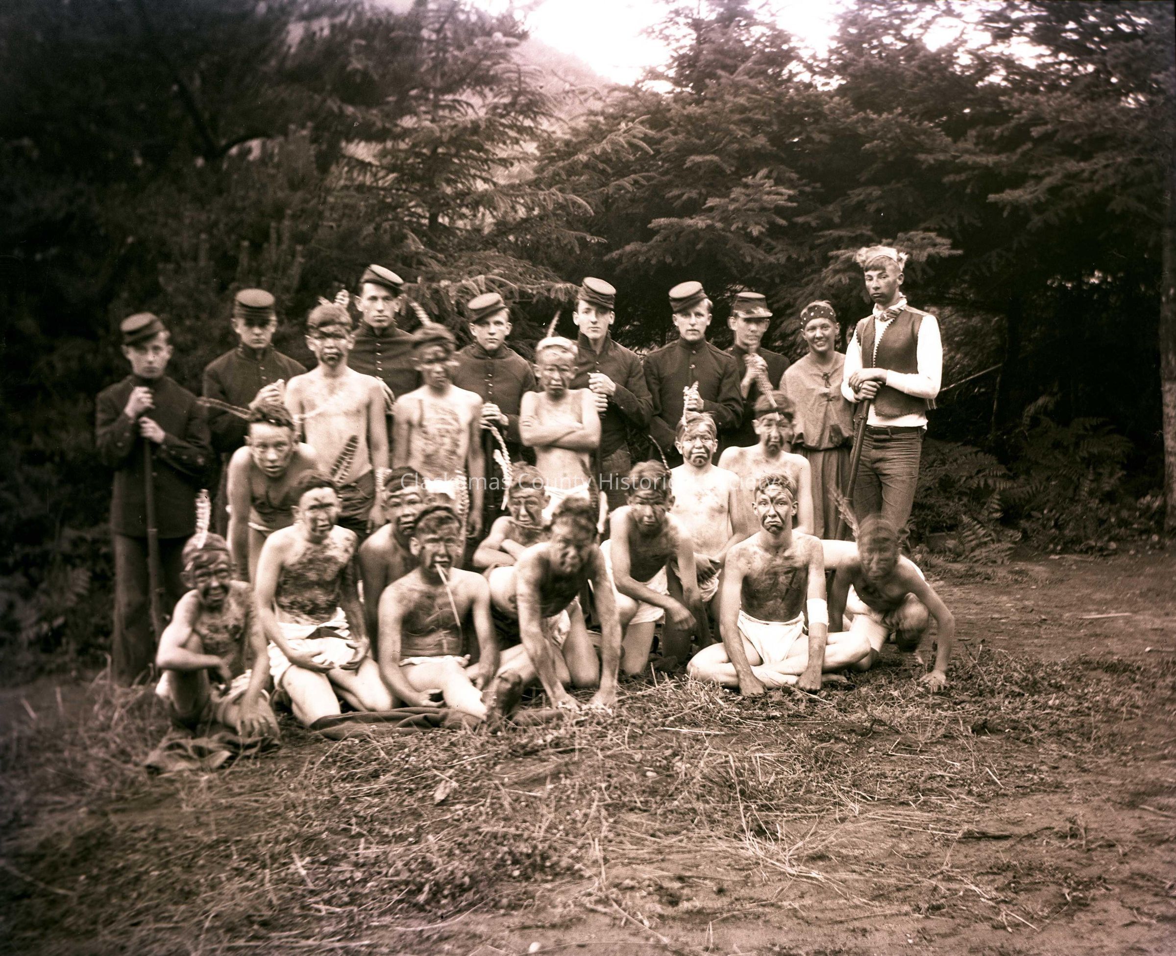 Photograph of the Mandan Pageant Crew Cast at Boy Scout Camp Meriwether.