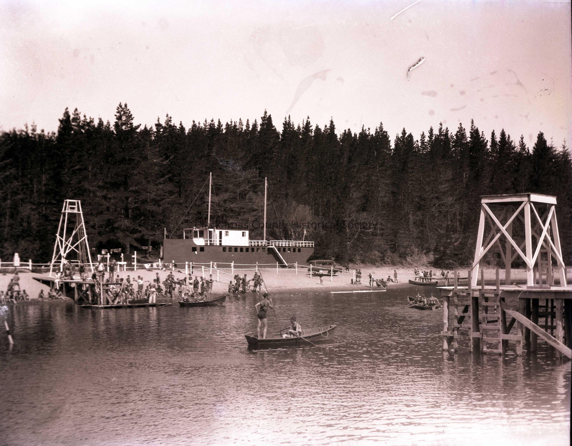 Photograph of the Ship and beach on Lake chamberlain at Boy Scout Camp Merriwether.Made/Created