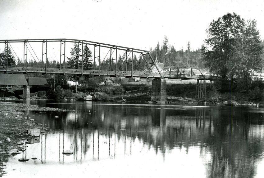 Bridge at Park Place over Clackamas River. Park Place school in the background.Made/Created