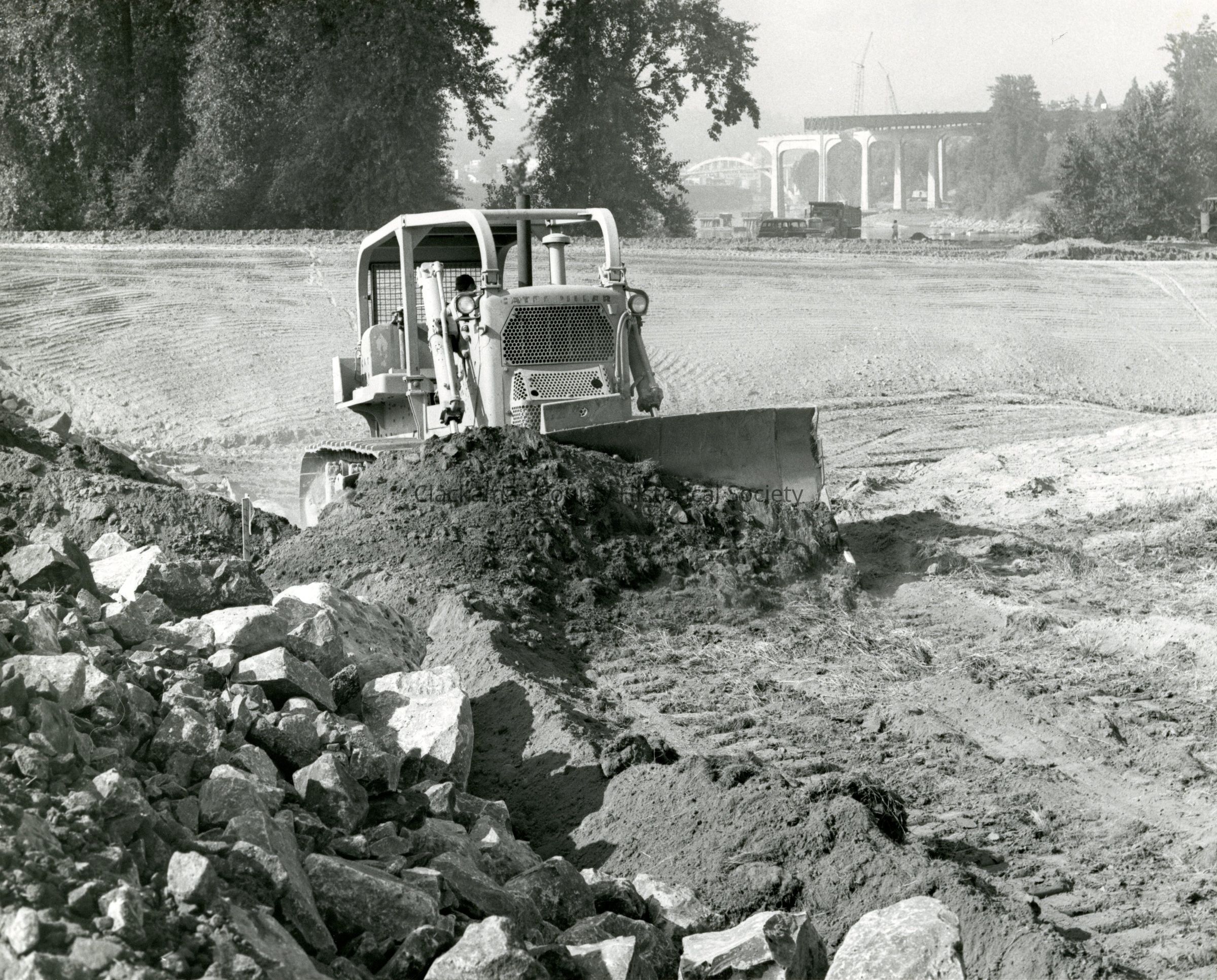 Bulldozer, I-205 Bridge Construction.Entry/Object ID