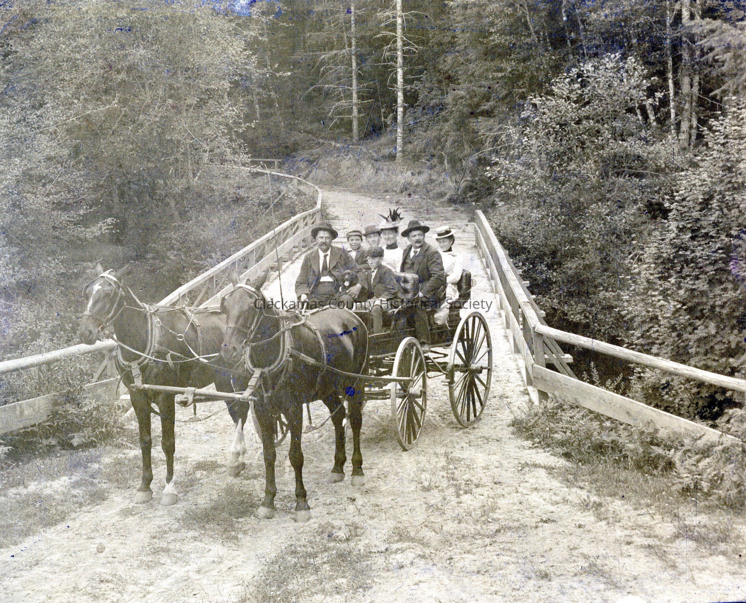 Burns Family Collection – Unknown Group in Horse Drawn Wagon on Bridge