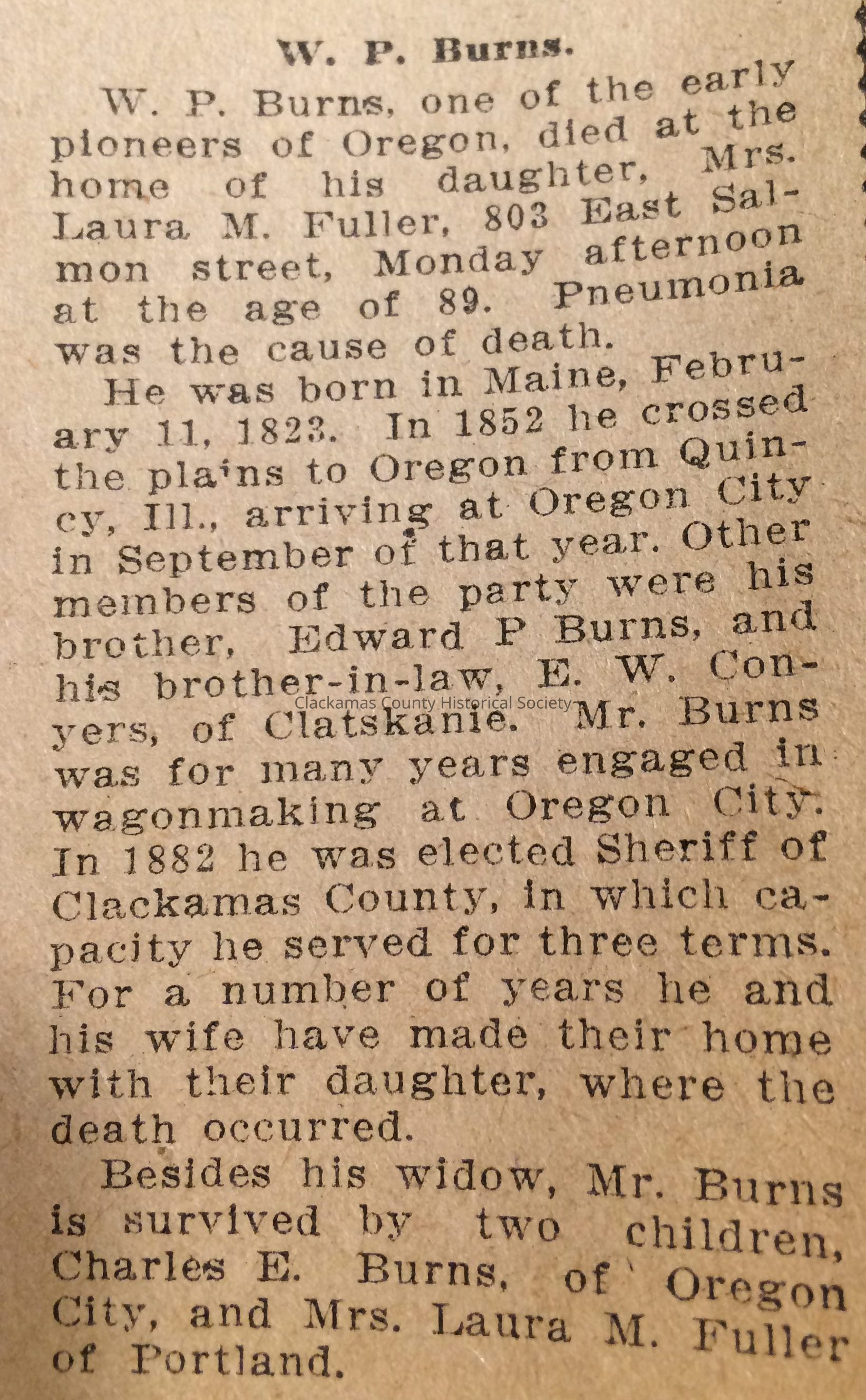 William Pitt Burns Husband - Born February 11, 1823 in Maine, Died January 30, 1911 Portland, Oregon - P-5077