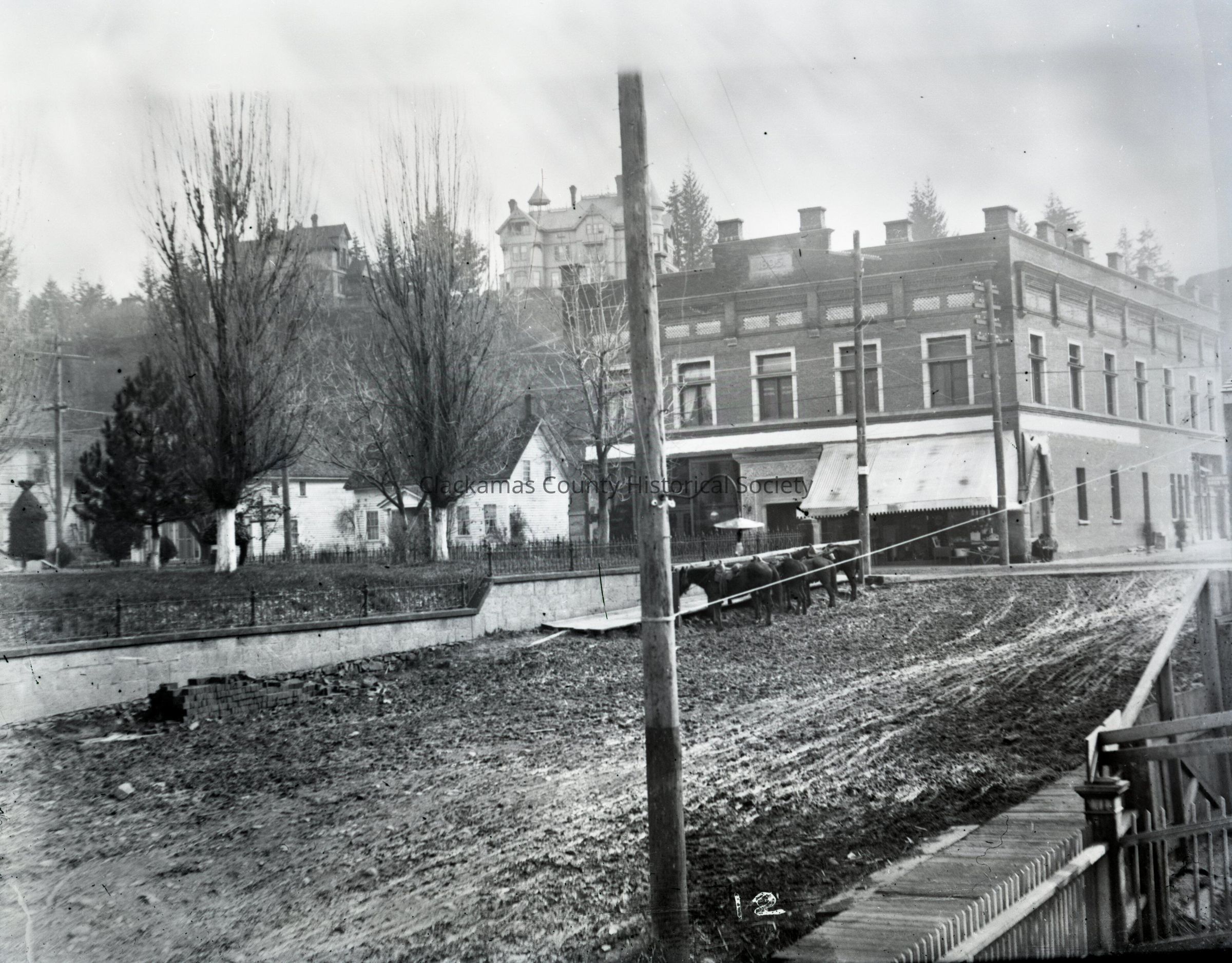Oregon City 1896 - Hitching Rack on 8th Street toward the Weinhard Building on Main StreetEntry/Object ID