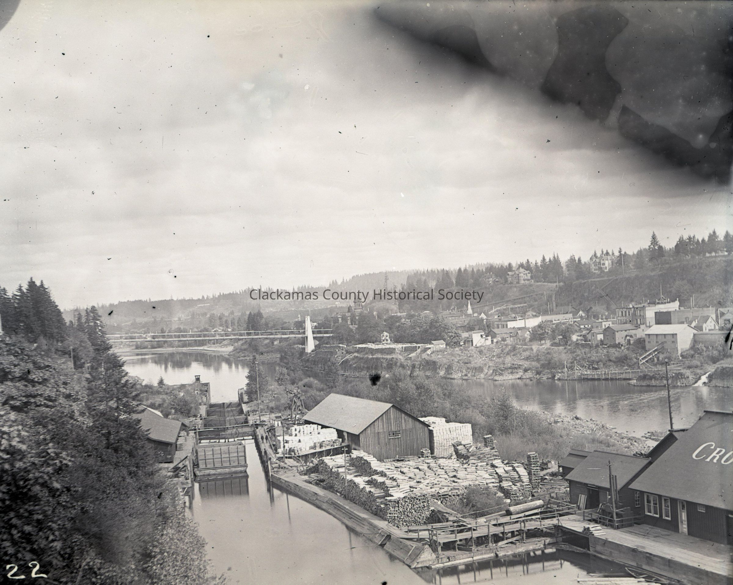 West Linn Locks looking north. Glass and film negatives in envelopes with photograph attached.Made/Created