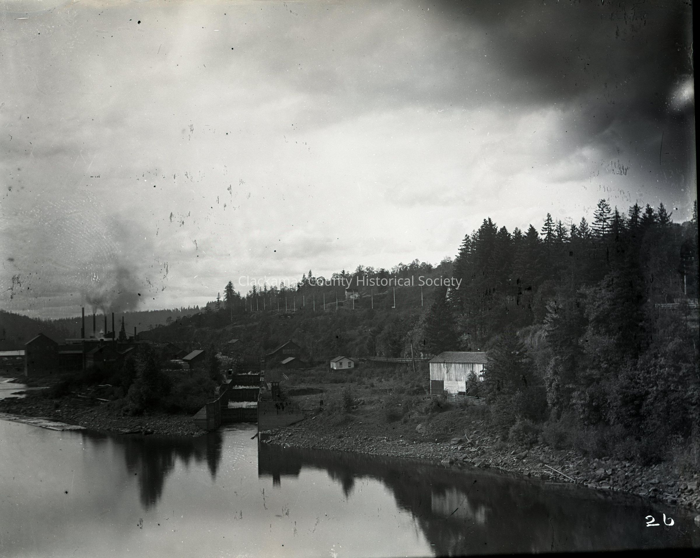 West Linn Locks viewed south from Suspension Bridge. Glass and film negatives in envelopes with photograph attachedMade/Created