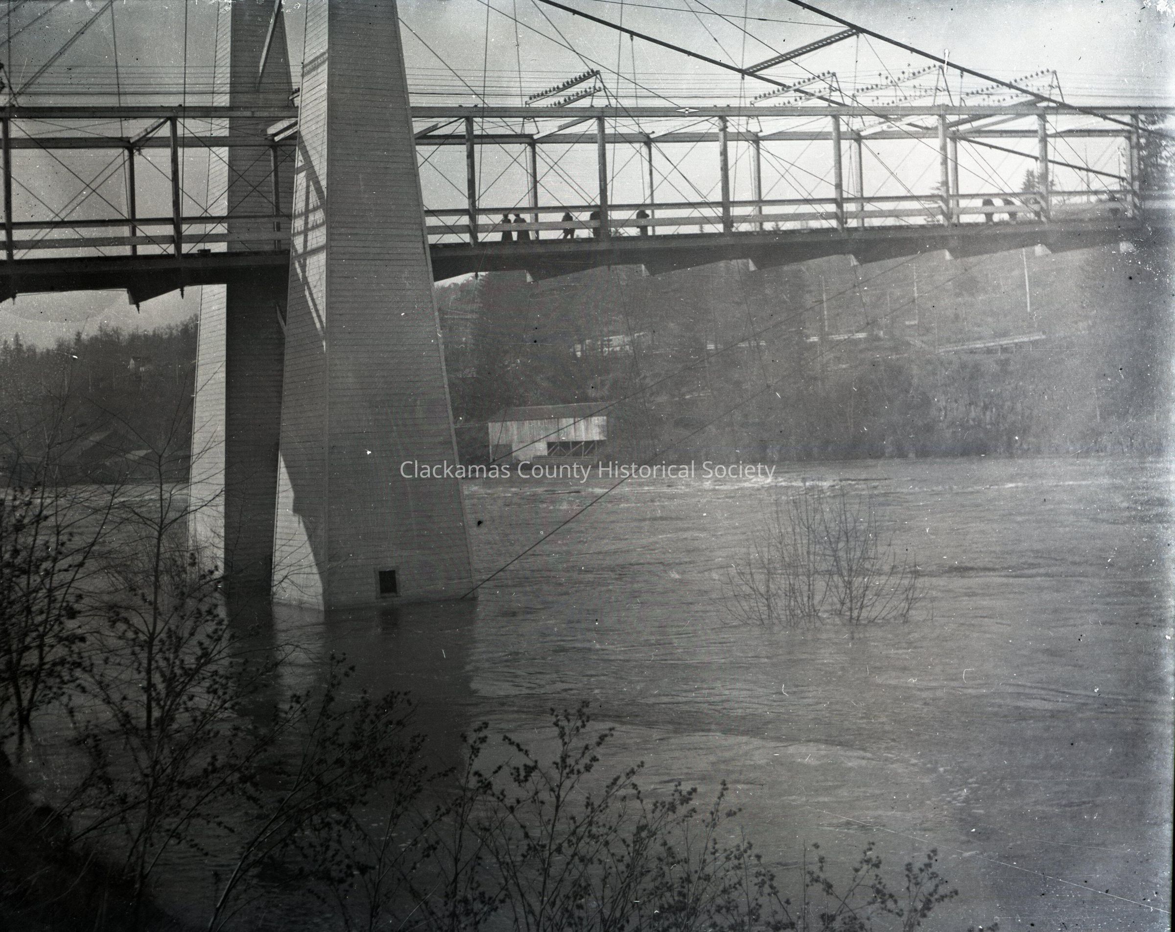 Oregon City-West Linn Bridge with flooding Willamette River. Glass and film negatives in envelopes with photograph attachedMade/Created
