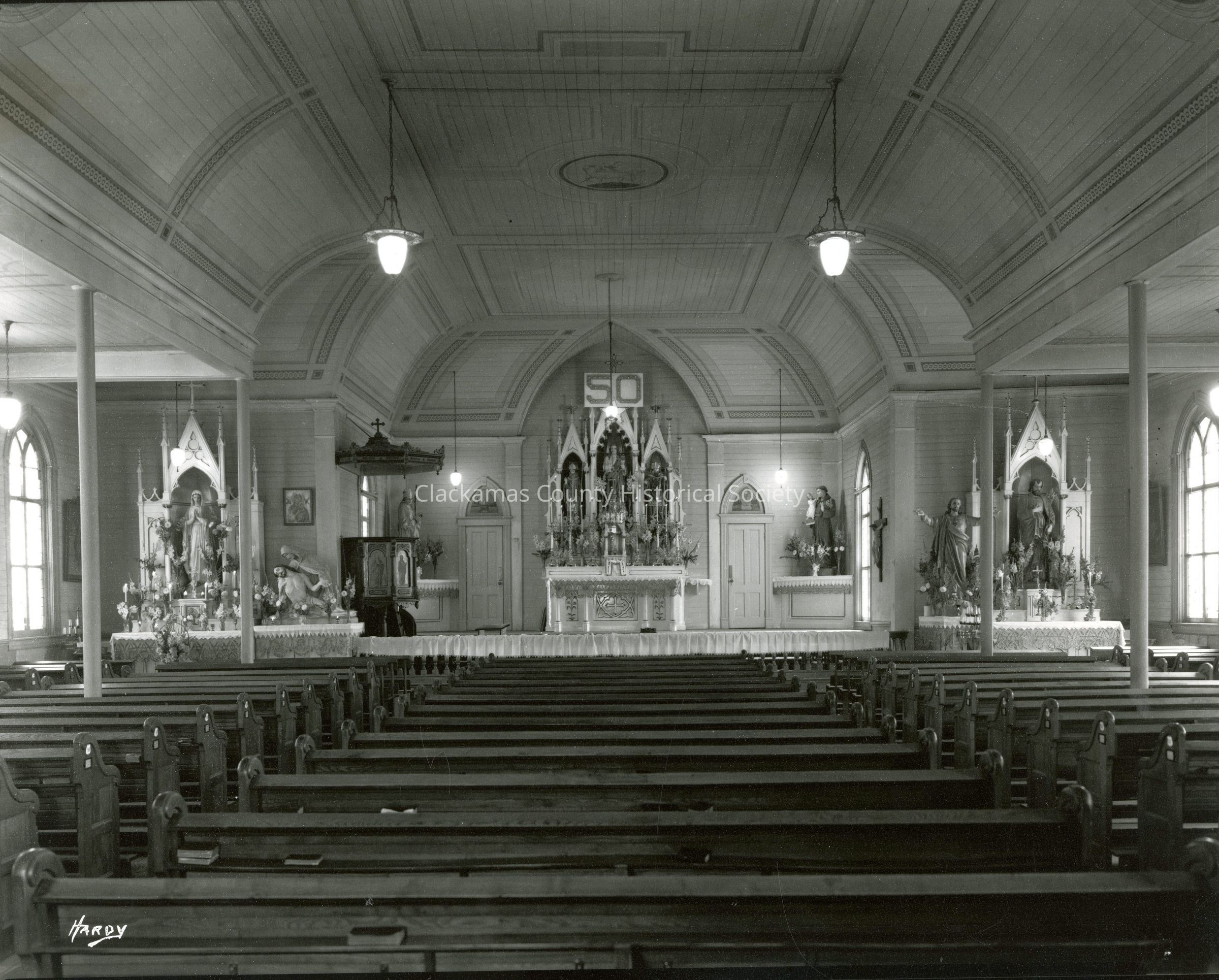 Interior of St. John's Catholic Church. 50th Anniversary of Hillebrand's Ordination. Church was located at 10th and Water Street (McLoughlin Blvd).Made/Created