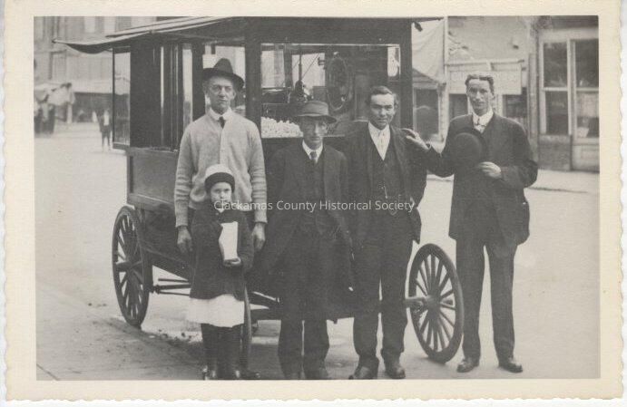 popcorn wagon 1916 4 men and child 1916 Jim Partlow Leo Berdsell George Dale Caufield # 21