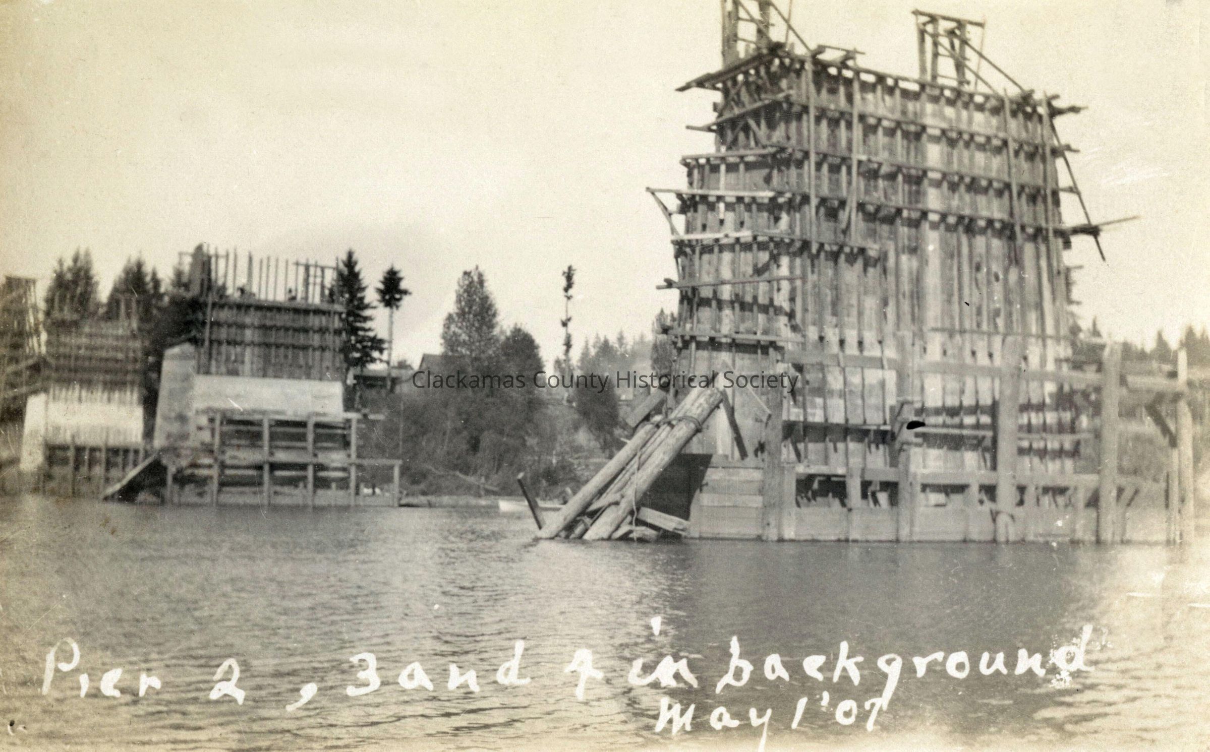 Piers #2, #3 and #4 of Oregon City Electric Railroad Bridge in Wilsonville during Construction.Made/Created
