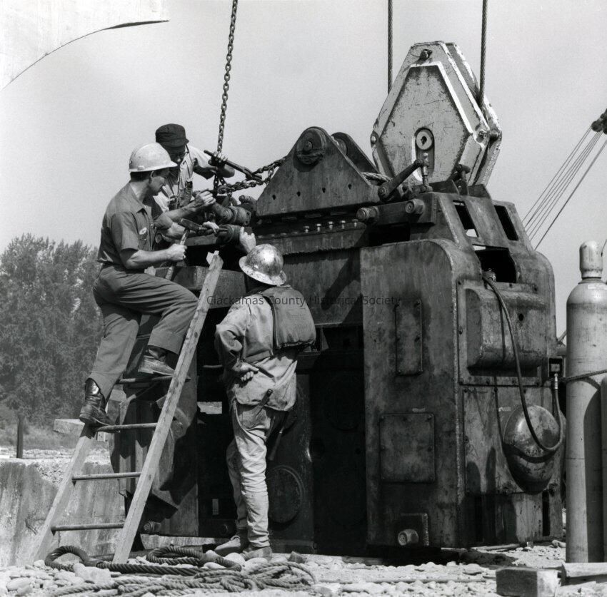 Construction workers, I-205 Bridge Construction near West Linn.Made/Created